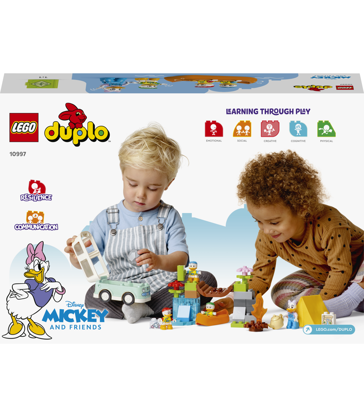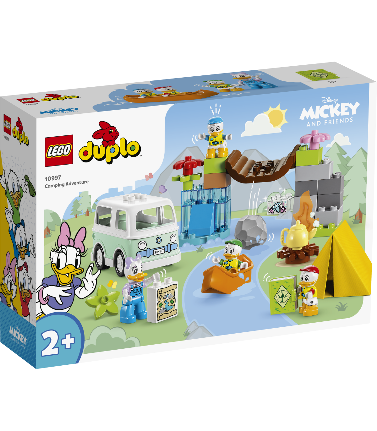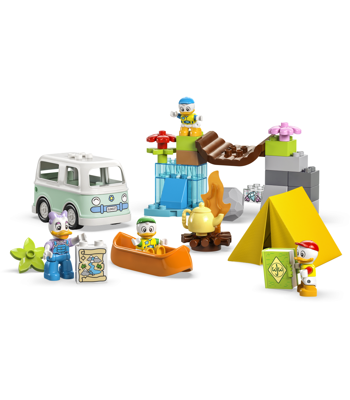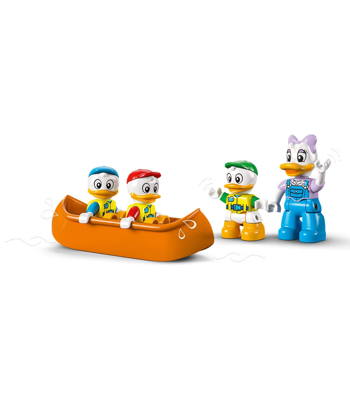 • Palju tuttavaid nägusid – komplektis on kanuu, sõidutatav autosuvila ja tekstiilist telk, samuti neli LEGO® DUPLO® figuuri: Disney Piilupart Daisy ja tema nõod Huey, Dewey ja Louie