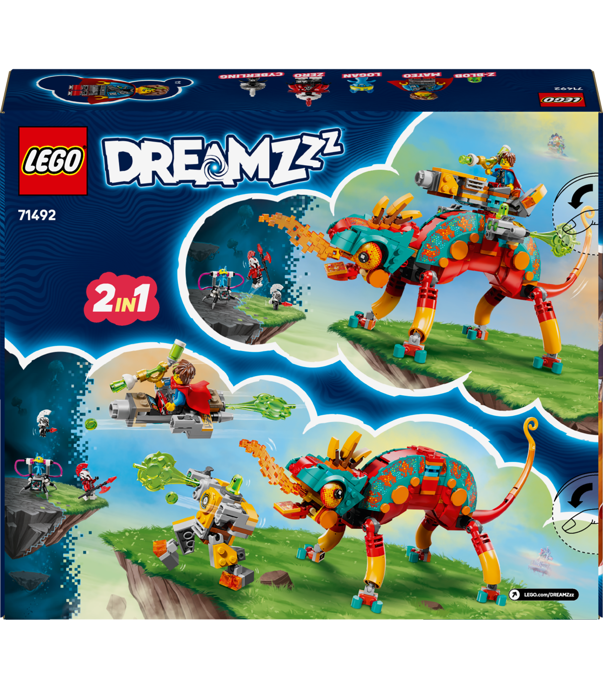 • Fantaasialoomade mängukomplekt – vabasta laste loovus 7-aastastele ja vanematele poistele ja tüdrukutele mõeldud LEGO® DREAMZzz™ Mateo tulekameeleoni ehituskomplektiga, mis pakub 2 ehitusrežiimi