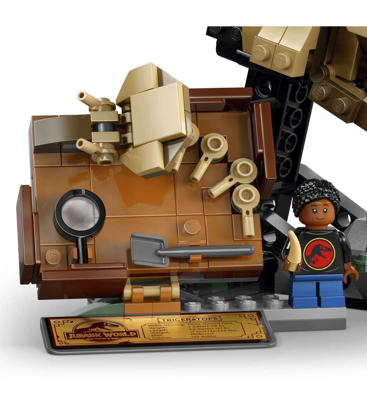 • Muudetava asendiga Triceratopsi kolju koos avatava lõualuuga – seda mängukoljut saab esitleda avatult või suletuna kas alusel või minifiguuri, kaevamisplatsi, minifossiilide ja väljakaevamistööriistade kõrval