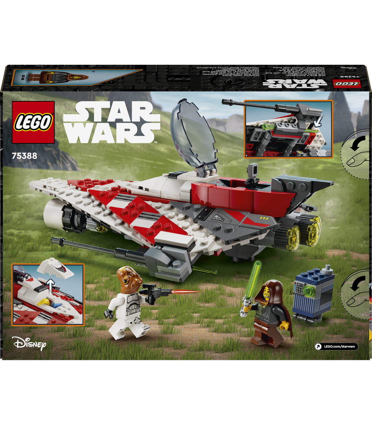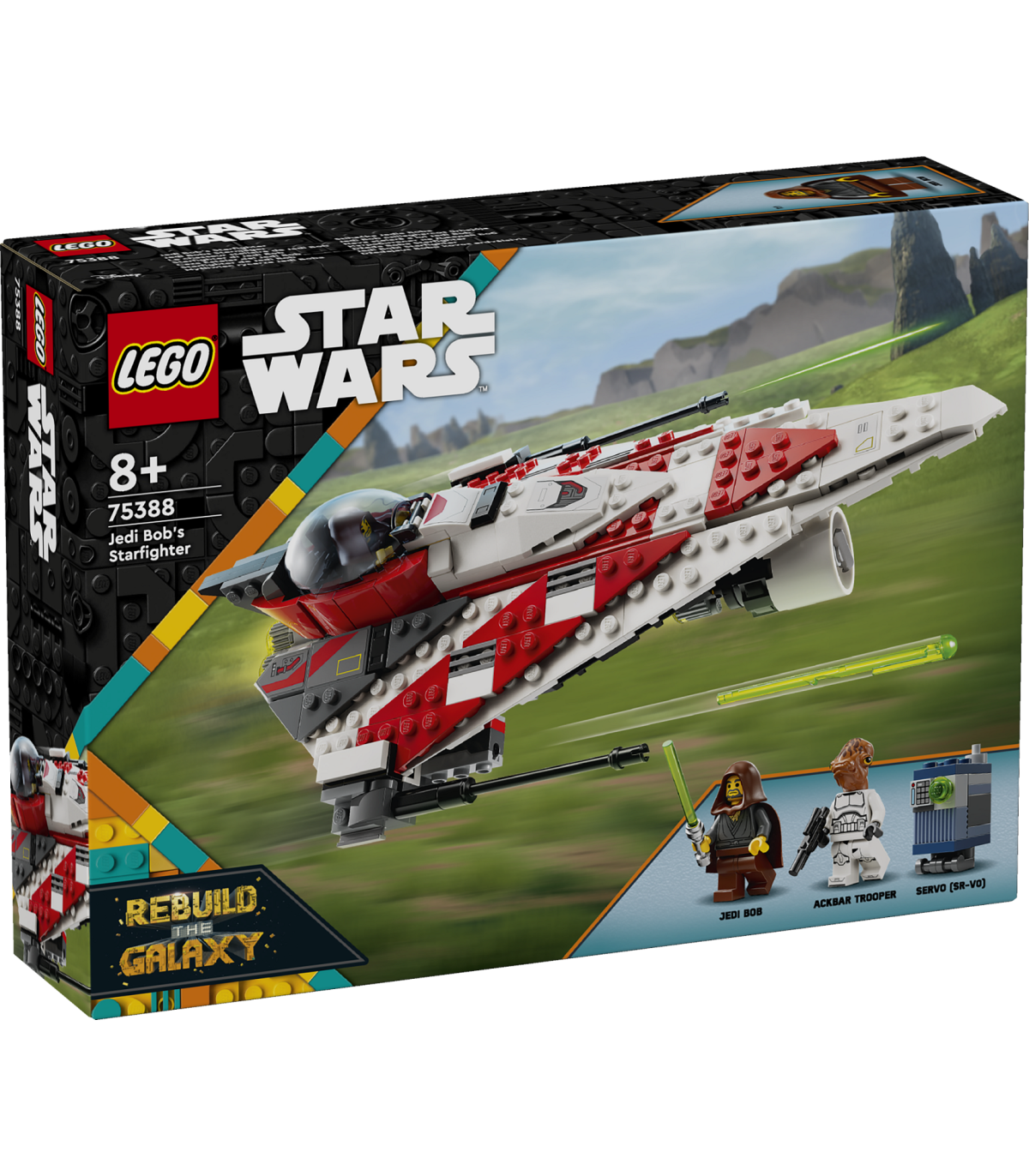 • Ehitusmänguasi, milles on kaks LEGO® Star Wars™ minifiguuri – Jedi Bob valgusmõõgaga, Ackbar Trooper koos kahuriga ja Servo (SR-V0) LEGO droidfiguur
