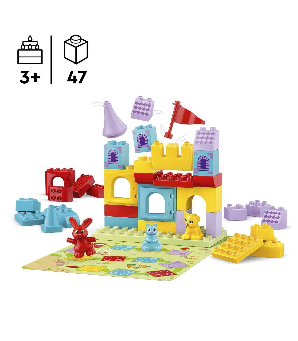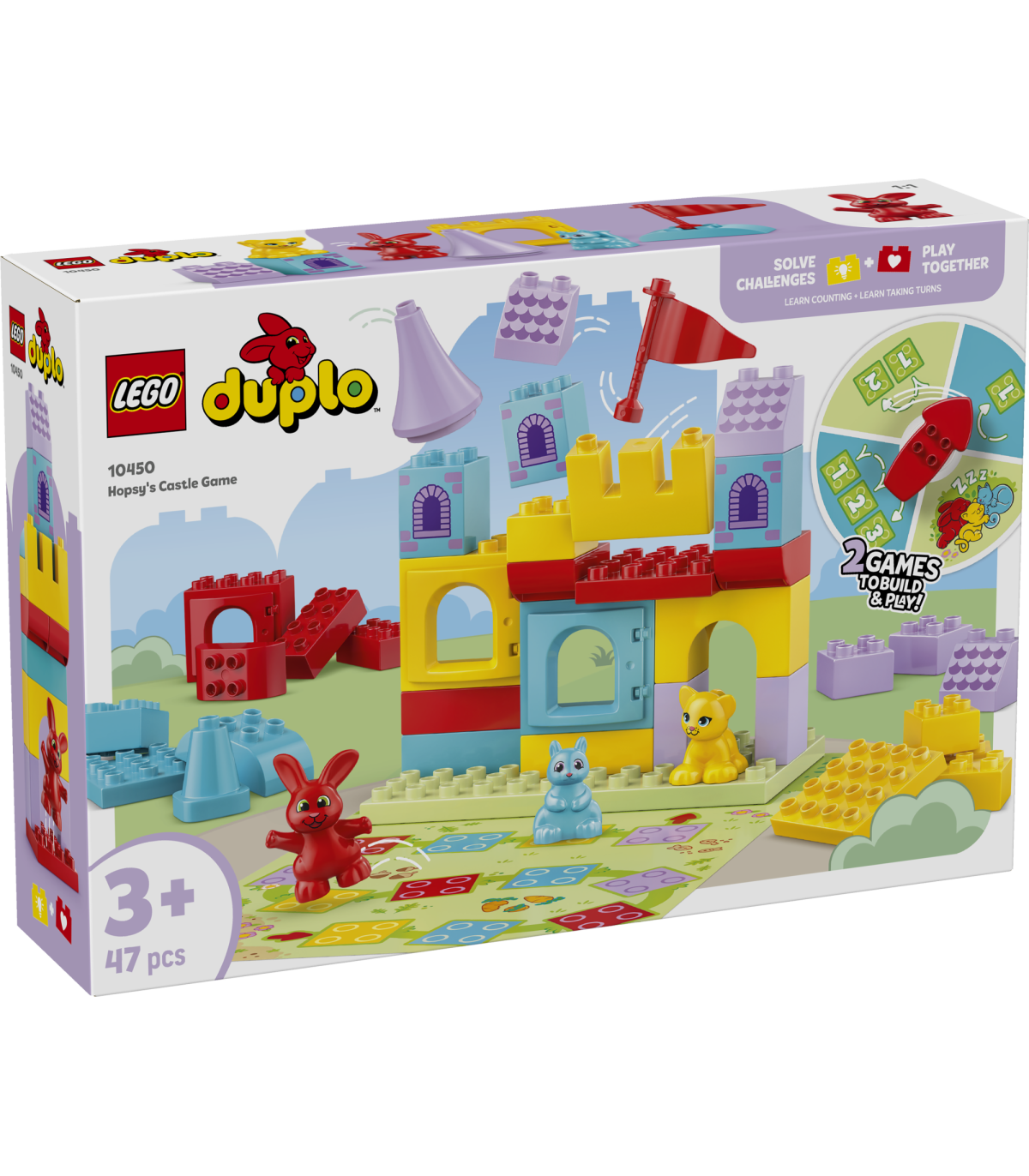 • Õpi ehitamise kaudu – naudi lõbusaid peretegevusi LEGO® DUPLO® Hopsy lossimängu kaks ühes lauamänguga eelkooliealistele