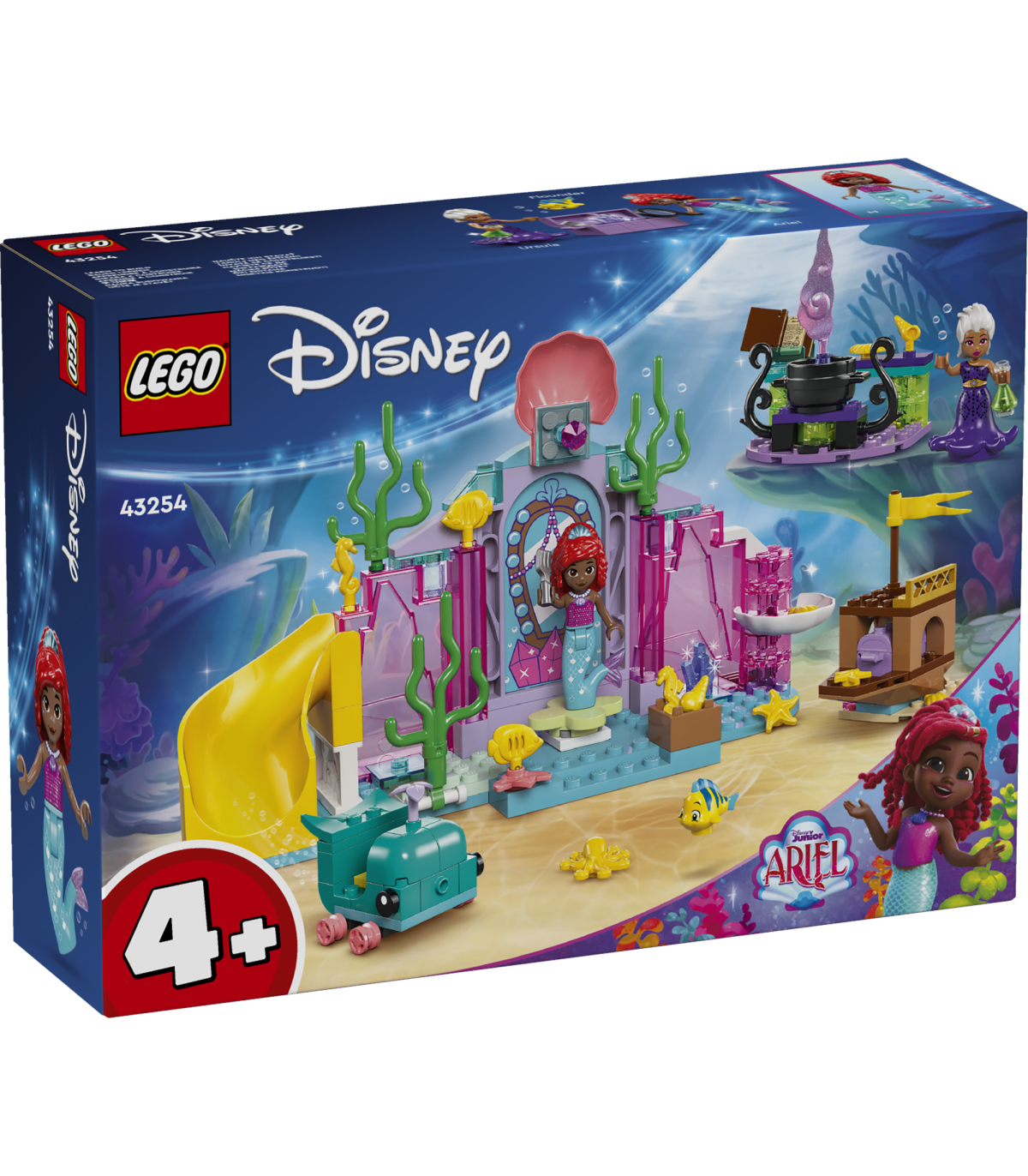 • Loovmänguks valmis – selles kokkupandavas komplektis on kristallkoobas, mis on inspireeritud Disney Juniori sarjast Ariel, Ursula ja Ariel LEGO® ǀ Disney mininukufiguurid ning Flounderi LEGO ǀ Disney kalafiguur
