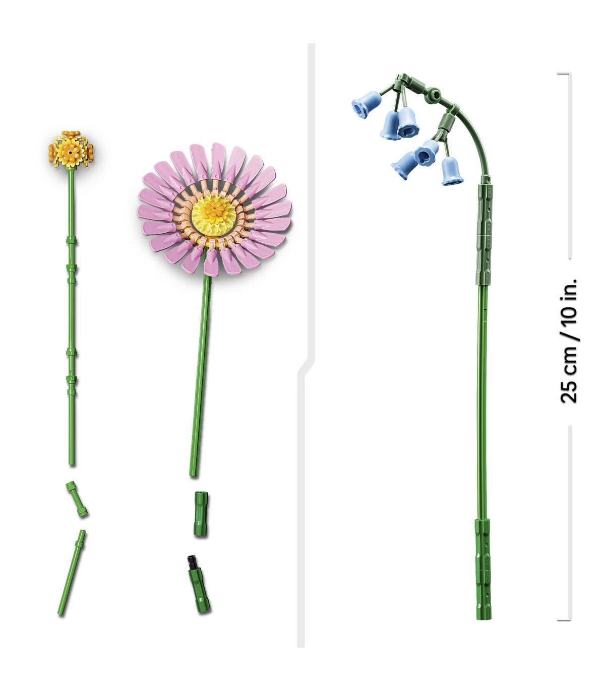 • Ehita rohkem õisi – seda klotsidest kimpu saab kombineerida teiste LEGO® Botanicalsi kollektsiooni kuuluvate komplektidega (müüakse eraldi)