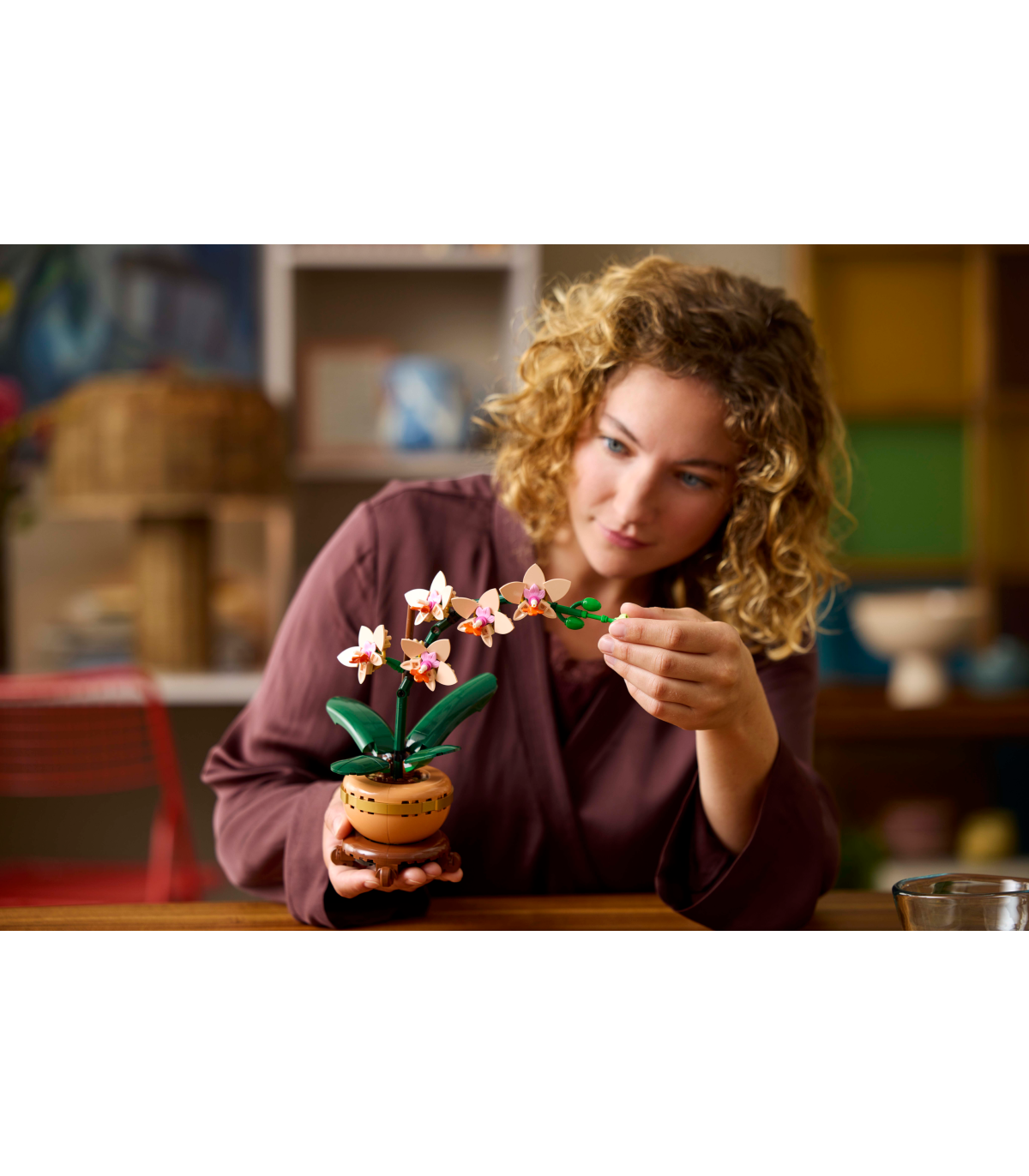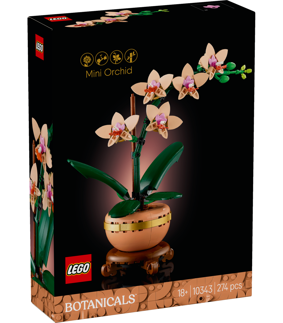 • Autentsed detailid – loodusest inspireeritud ehituskomplektis on viis virsikutooni õit, mõned pungad ja rohelised lehed elutruu välimuse saamiseks ning kerge terrakota lillepott puiduimitatsiooniga alusega