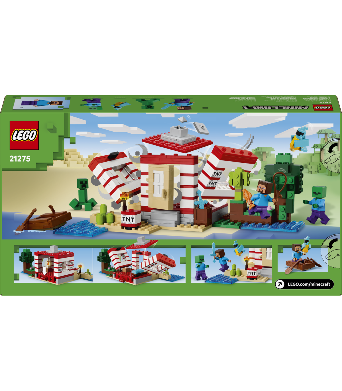 • Plahvatav LEGO® Minecraft® seiklusmänguasi – lapsed saavad lülitit vajutada, et käivitada plahvatusfunktsioon, mis paneb maja laed ja seinad kokku varisema