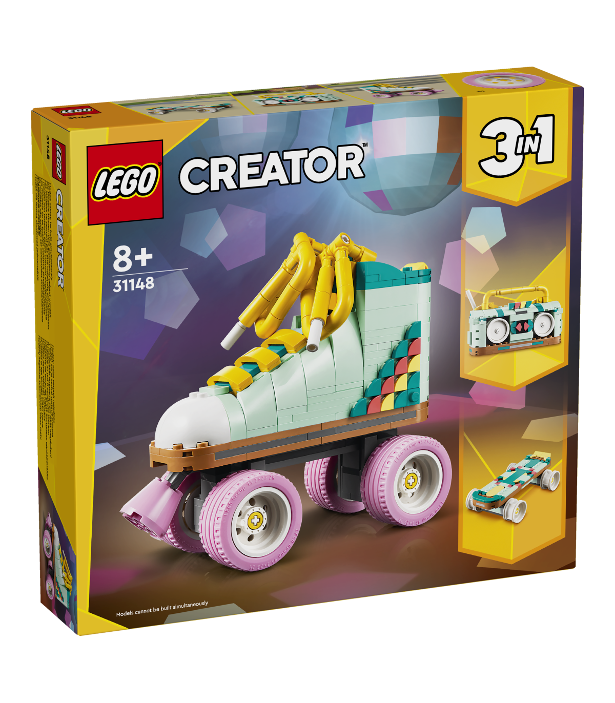 • 3 retromudelit ühes karbis – 8-aastased ja vanemad poisid ja tüdrukud saavad selle LEGO® Creator retrorulluisu ümber ehitada kolmeks popkultuuri ikooniks, kasutades samu klotse