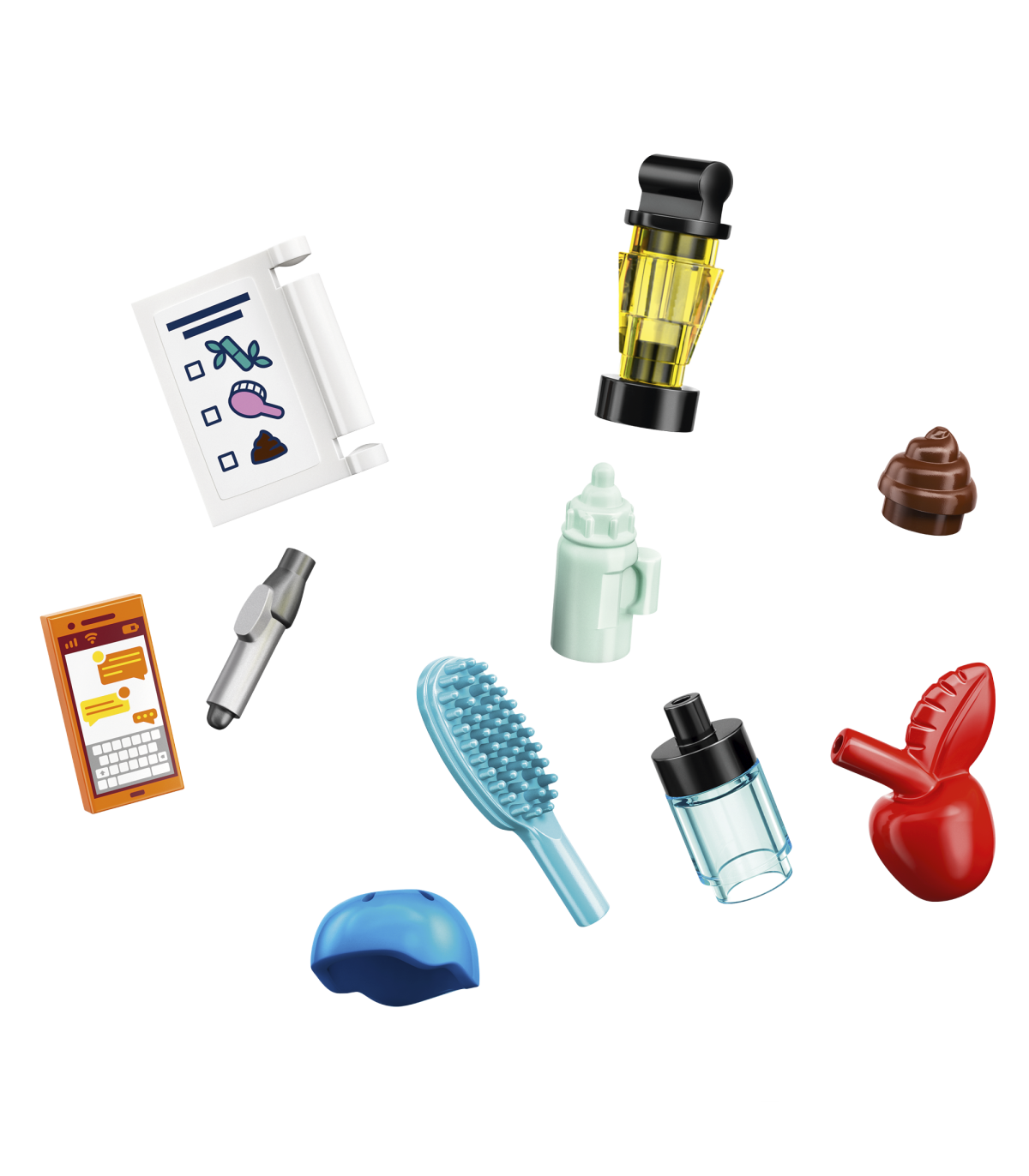• Loomamänguasi koos tarvikutega – avasta suurt hulka tarvikuid, mis ergutavad loomingulist jutuvestmist, sealhulgas kaal, hari, kakaelement, labidas, päikesepaneel, latern, telefon, pliiats, bambus, õun ja palju muud