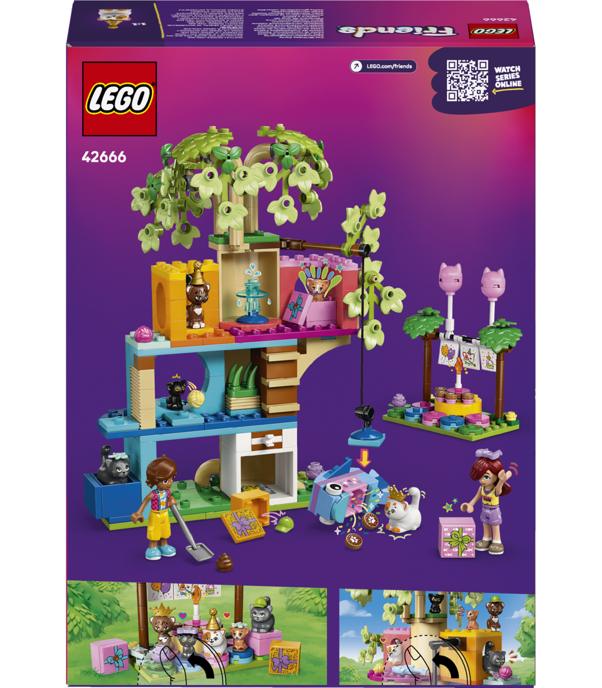 • Ehituskomplekt kassisõpradest lastele – selles LEGO® Friends kassi sünnipäeva ja puuonni mänguasjas 6-aastastele ja vanematele tüdrukutele ja poistele on kaasas 2 mininukku ja 5 kassifiguuri loominguliseks mänguks