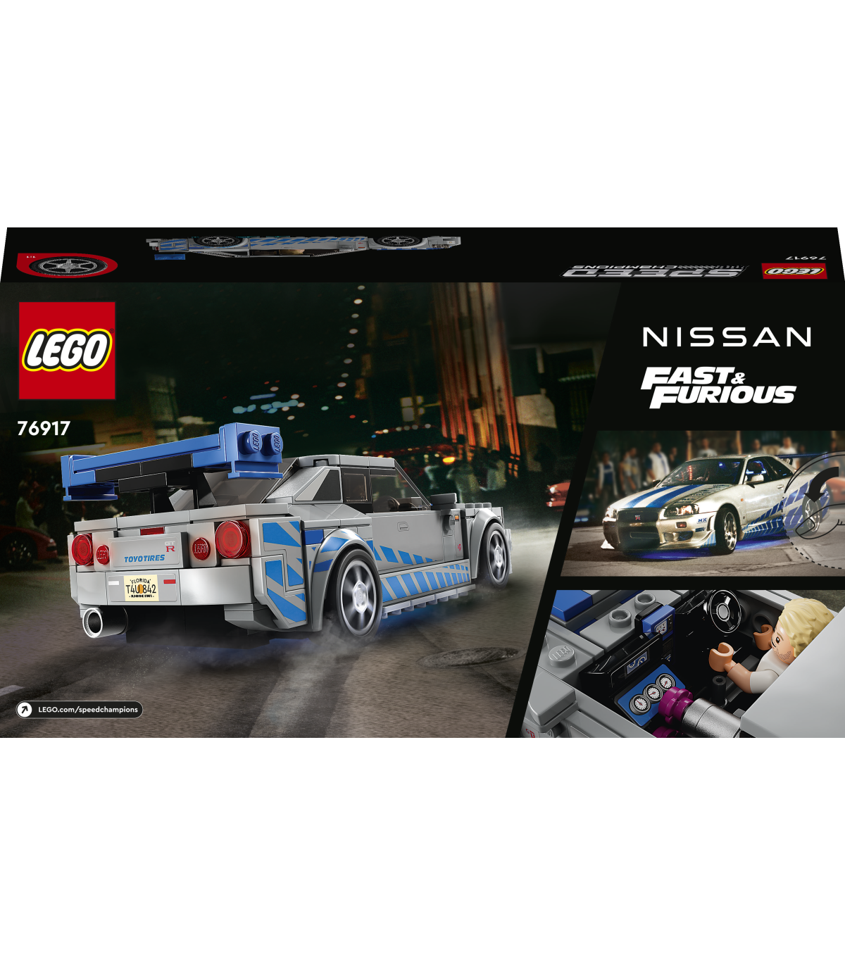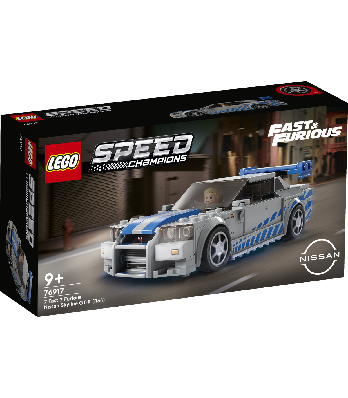 • Fast & Furious automudel – LEGO® Speed Champions 2 Fast 2 Furious Nissan Skyline GT-R (R34) mudel (76917) lastele, autoentusiastidele ja filmi 2 Fast 2 Furious fännidele