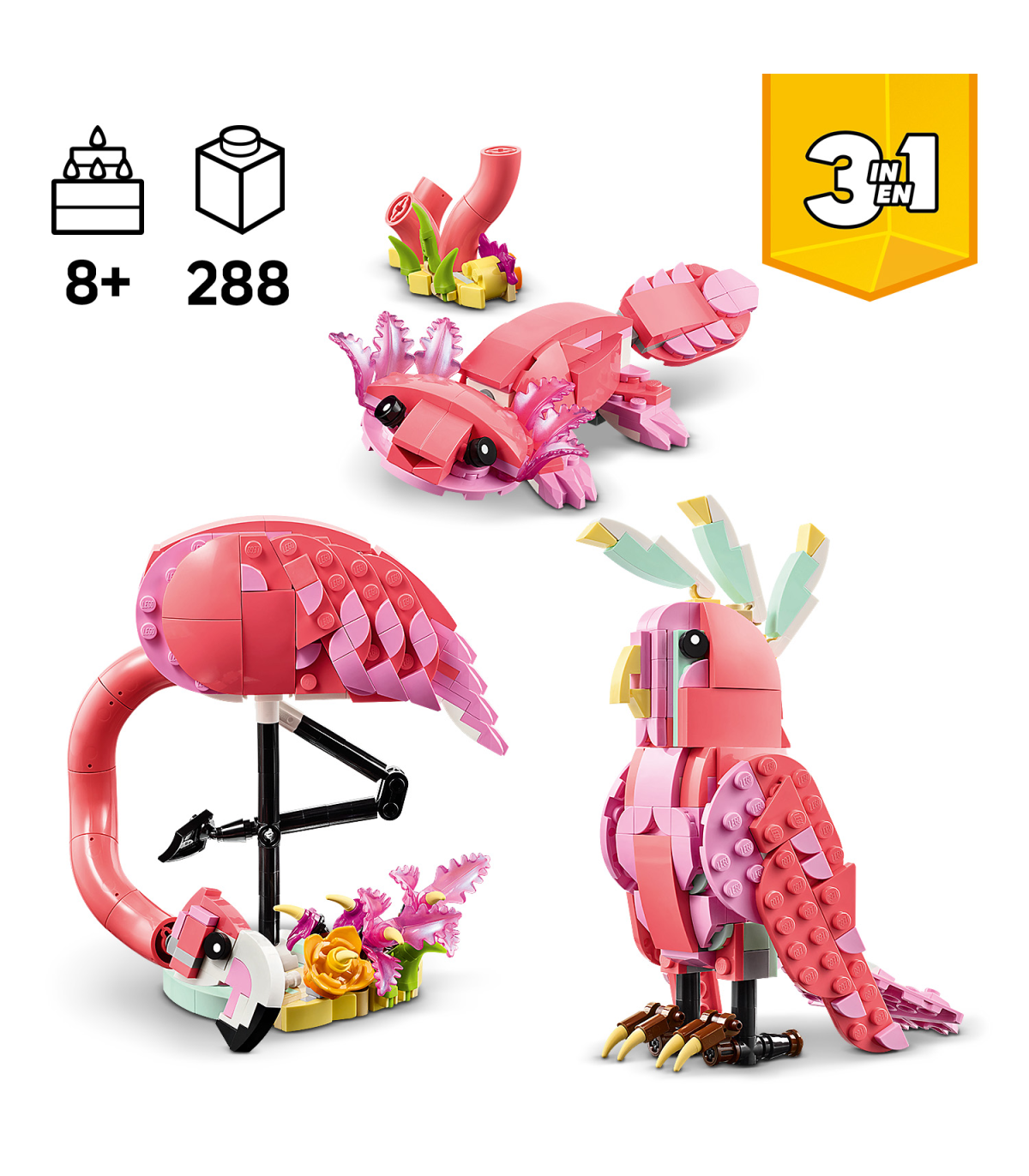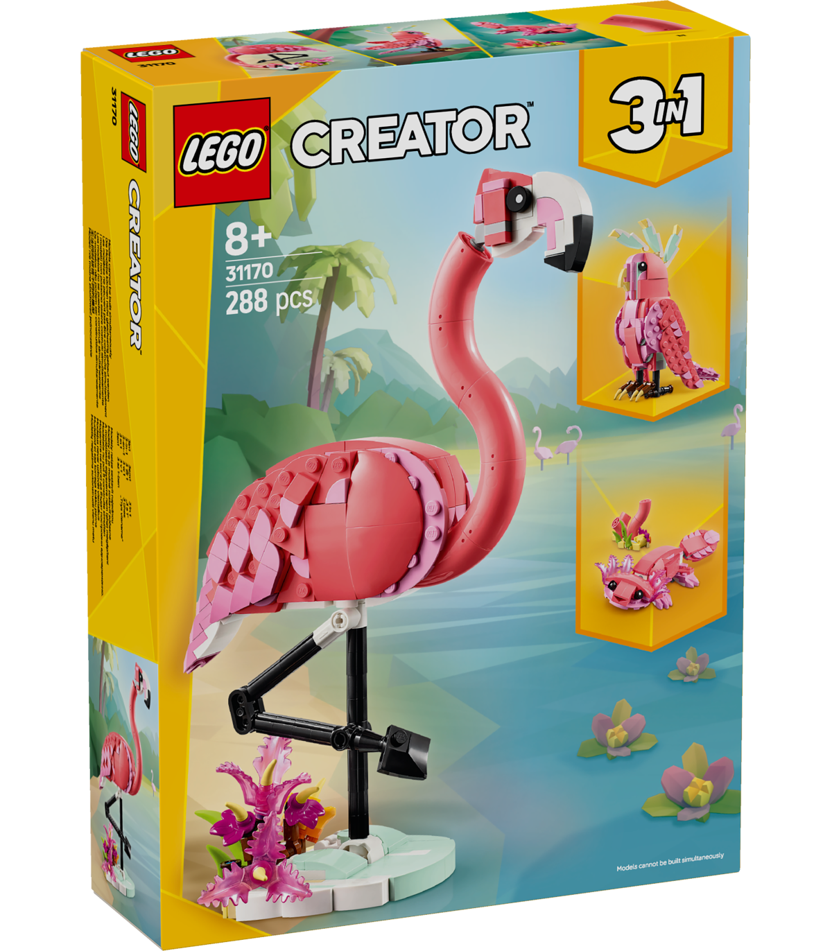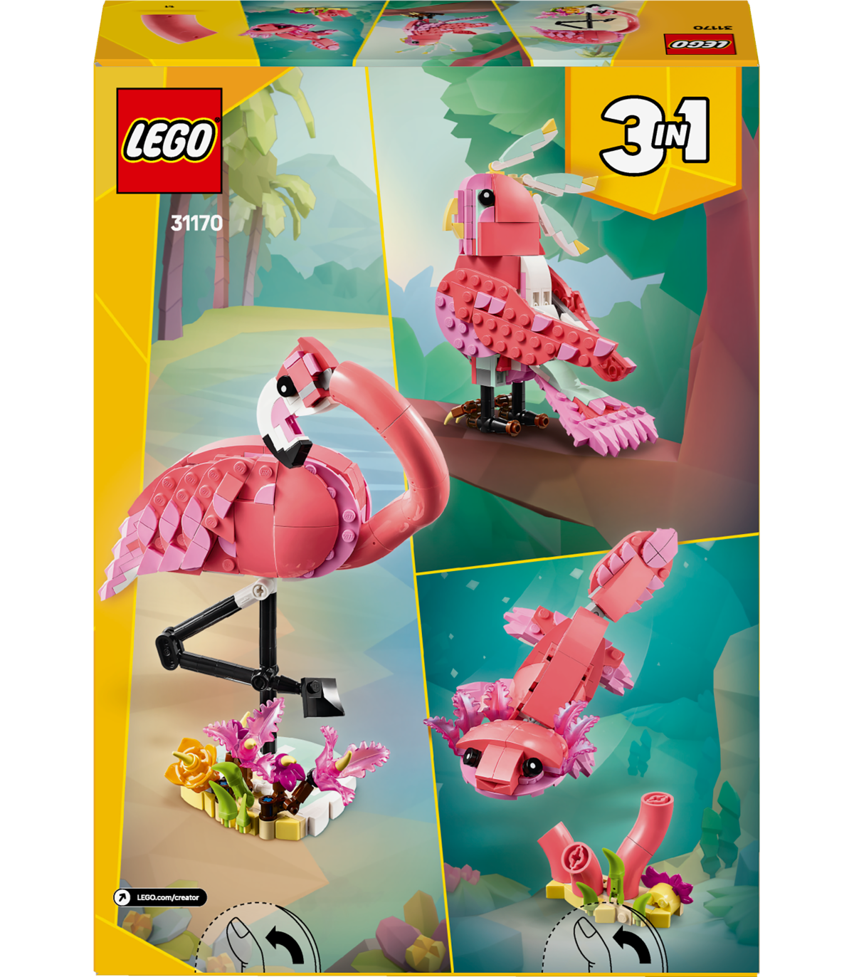 • Kolm ümberehitatavat loomamängukomplekti lastele ühes karbis – LEGO® Creator 3-ühes Metsloomad: roosa flamingo võimaldab vähemalt 8-aastastel tüdrukutel ja poistel samade klotsidega ehitada ja ümber ehitada kolm erinevat loomafiguuri