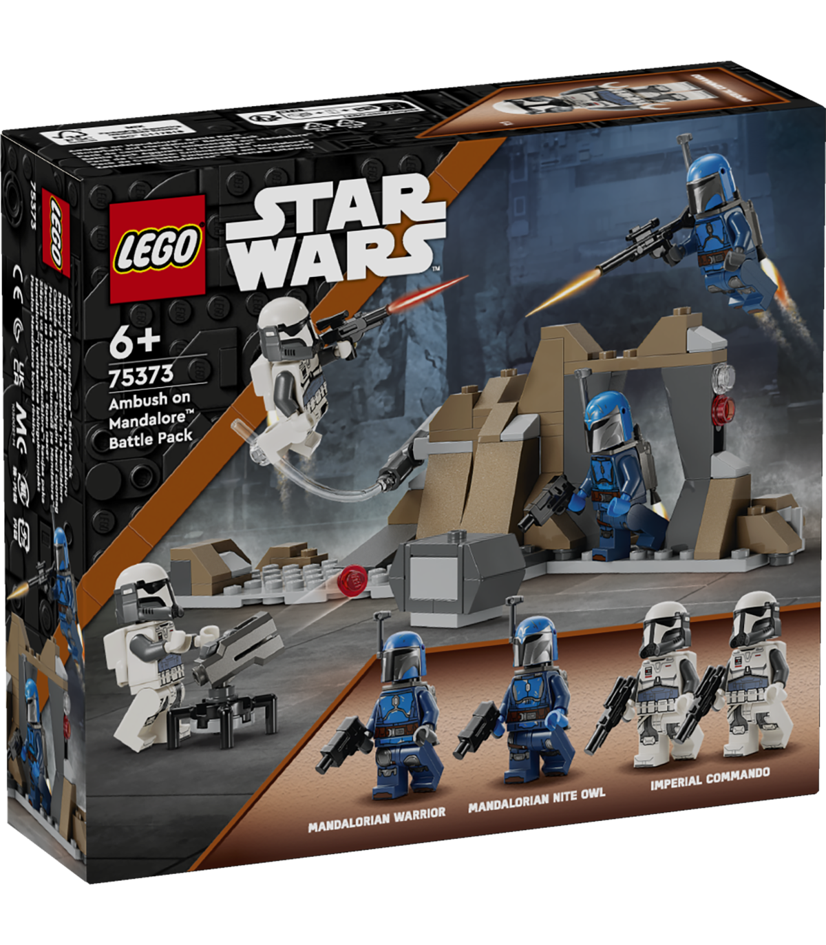 • Neli kogutavat LEGO® Star Wars™-i minifiguuri – Mandalore’i Nite Owl ja Mandalore’i sõdalane, mõlemal on paukpüstol, ja 2 Impeeriumi komandöri, kellest igaühel on paukpüstol, lisaks neli reaktiivseadme elementi