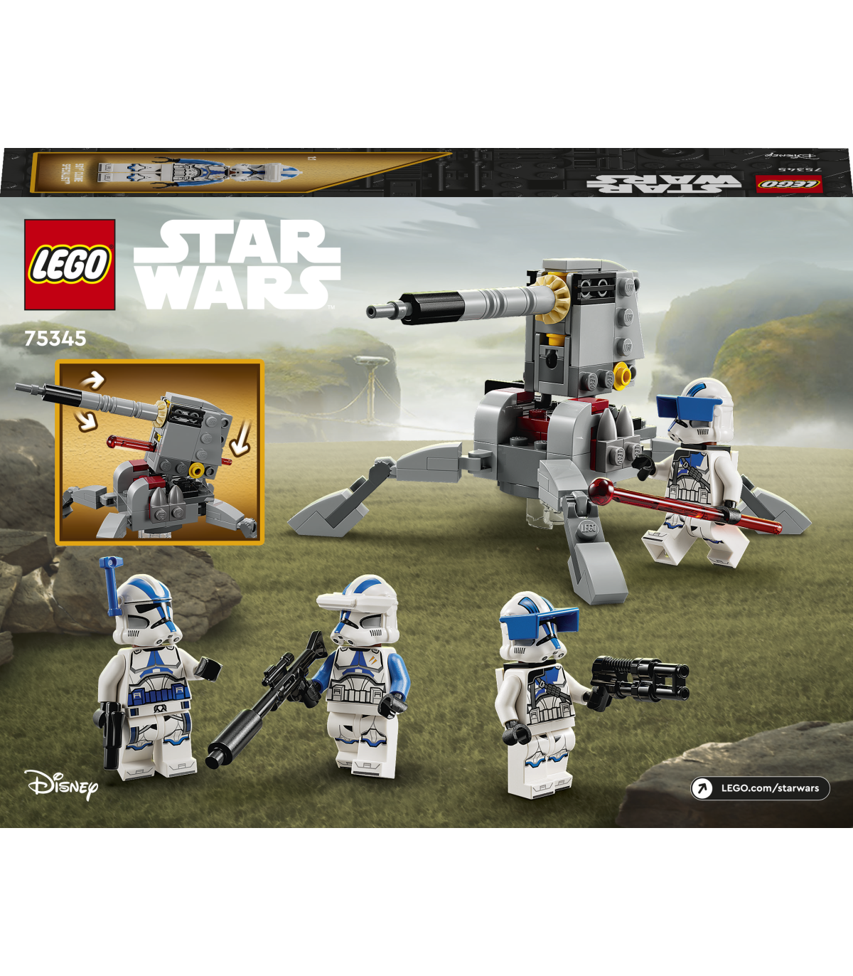 • Ehituskomplekt lahingumänguks – selle LEGO® Star Wars™ 501st Clone Trooperite lahingukomplekti (75345) abil saavad lapsed ehitada omaenda kloonide eskaadri ning taastada filmi „Star Wars: Kloonide sõda“ seikluslikud stseenid