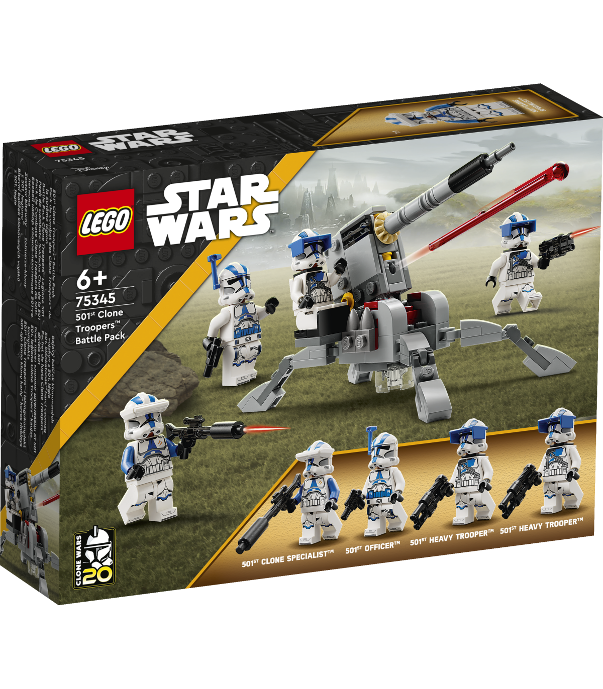 • Neli LEGO® Star Wars™ minifiguuri – paukpüstoliga 501st Officer, kahurpüstoliga 501st Clone Specialist ja kaks kahuritega 501st Heavy Trooperit