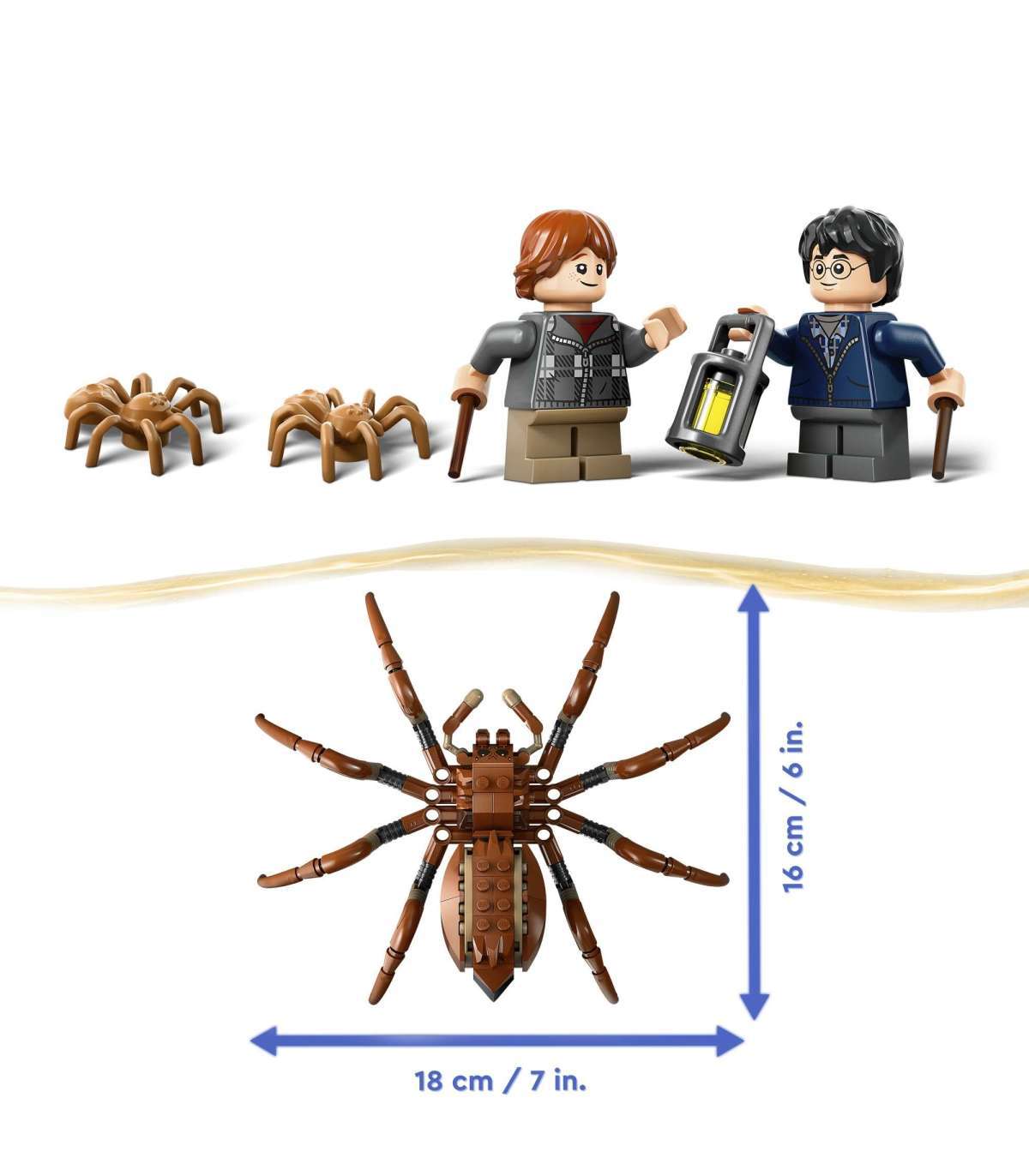 • Maagiline olendifiguur – poseeri Aragogi jalgade, kihvade ja tundlatega ning taasesita dramaatilisi Harry Potter™-i stseene keelatud metsas