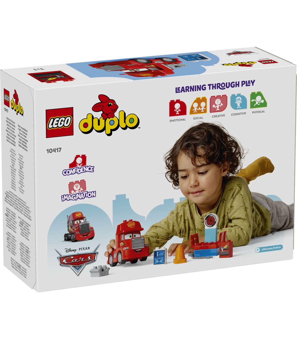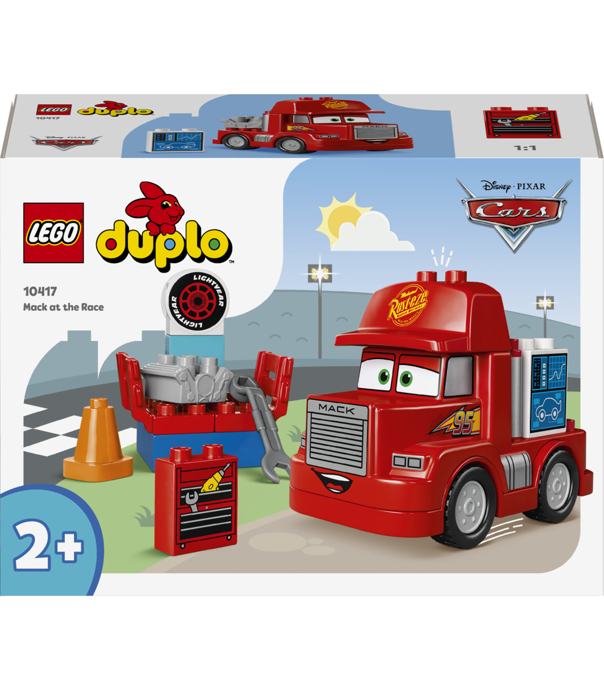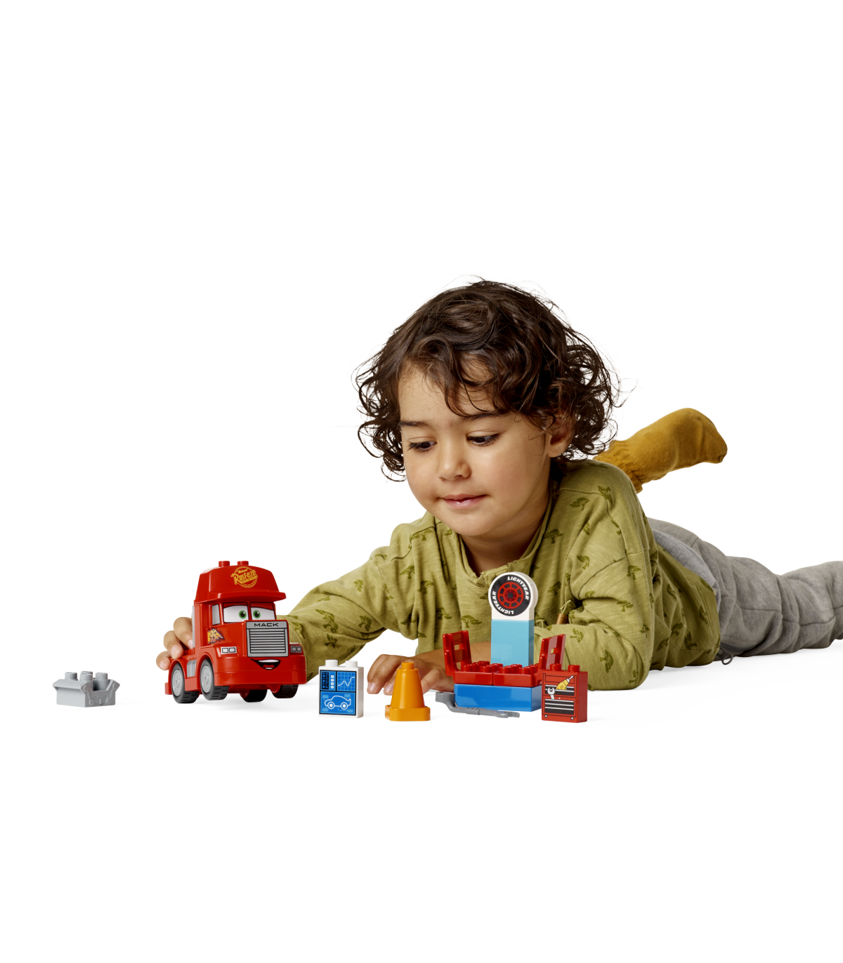 • LEGO® DUPLO® veok koos loominguliste tarvikutega – sisaldab juhitavat ja kokkupandavat Disney ja Pixari Macki mudelit filmist „Autod“ , lisaks klotsidest kokkupandavat garaaži, mootoriklotsi ja koonust
