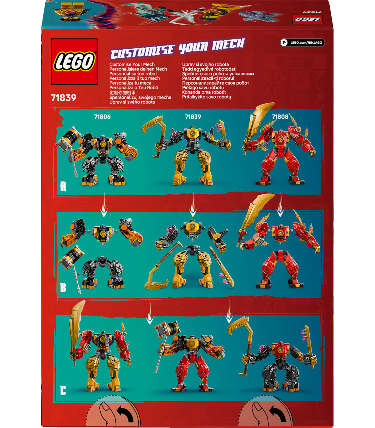 • Ehita oma robot – lapsed saavad kombineerida ja sobitada selle roboti kehaosi ja relvi teiste 2024. aasta NINJAGO® tootevalikusse kuuluvate kohandatavate robotitega (müüakse eraldi), et luua ise ülim robotifiguur