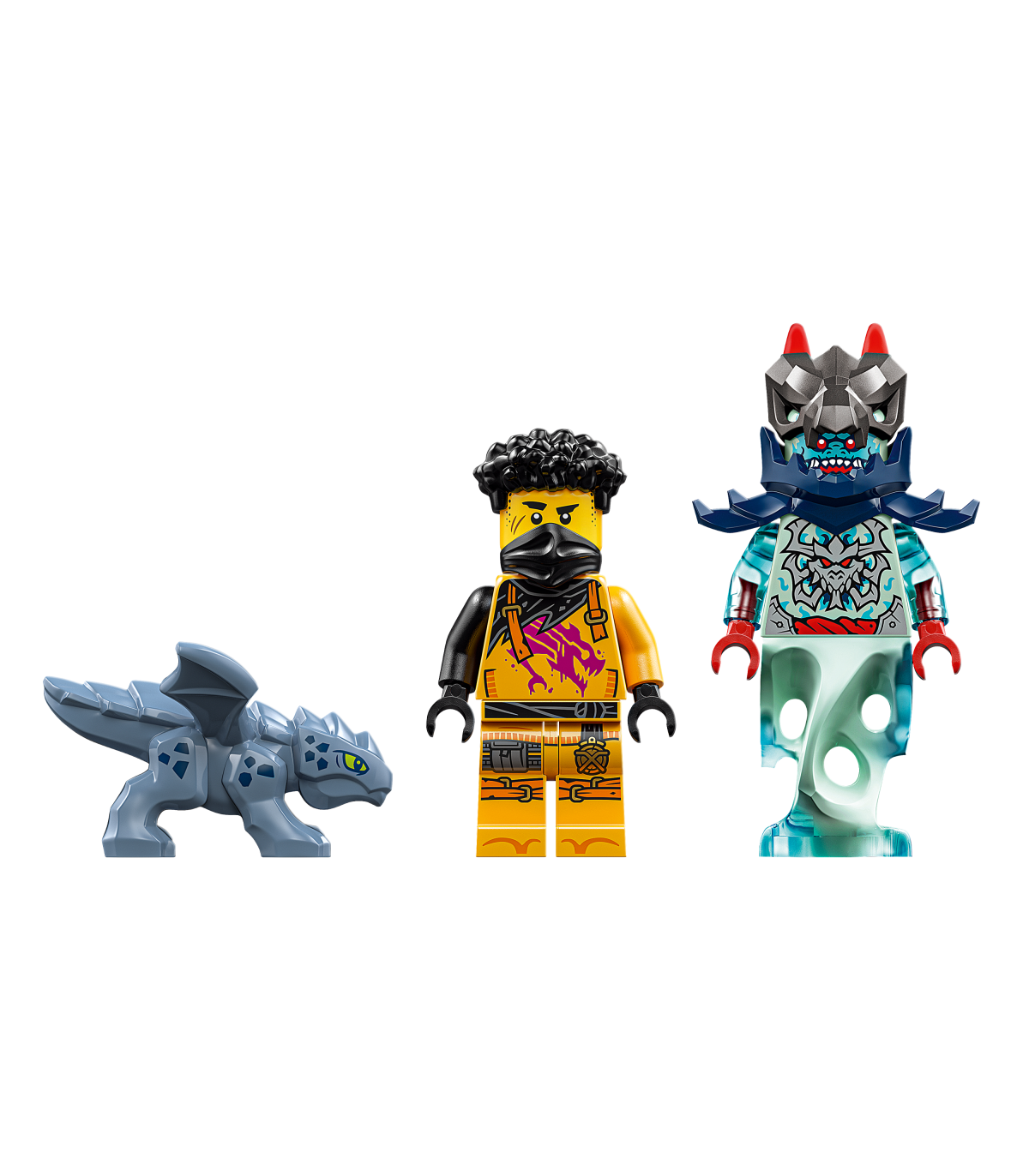 • 2 NINJAGO® minifiguuri – LEGO® komplektiga on kaasas Arin, kes on relvastatud kristallkatana mõõgatarvikuga, ja kurikuulus tontlik draakonisõdalane hea ja kurja lahinguteks, Beebi-Riyu mudel