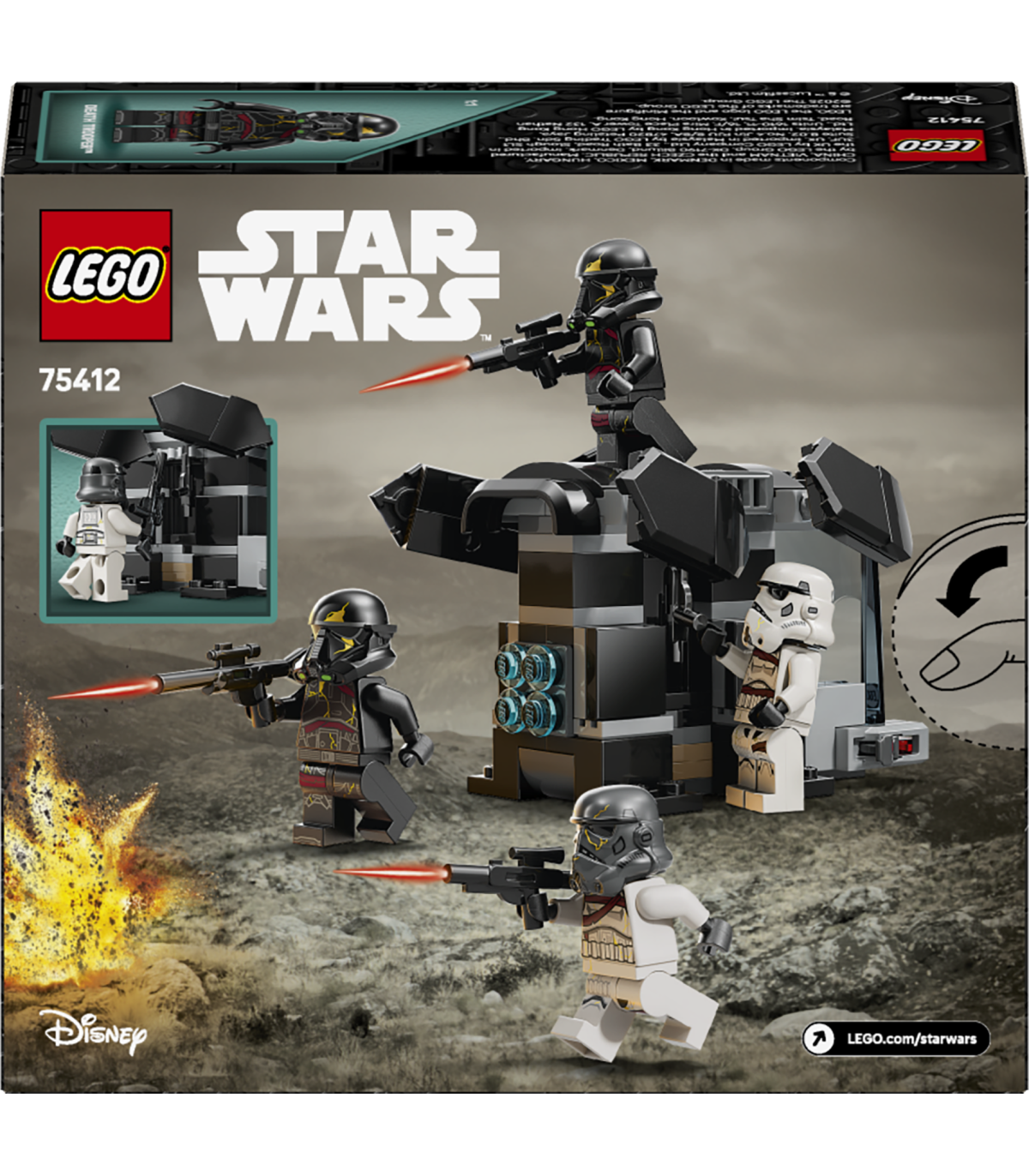 • 4 LEGO® Star Wars™ minifiguuri – 2 Death Trooperit ja 2 Night Trooperit, kellel mõlemal on kiiver ja kahur