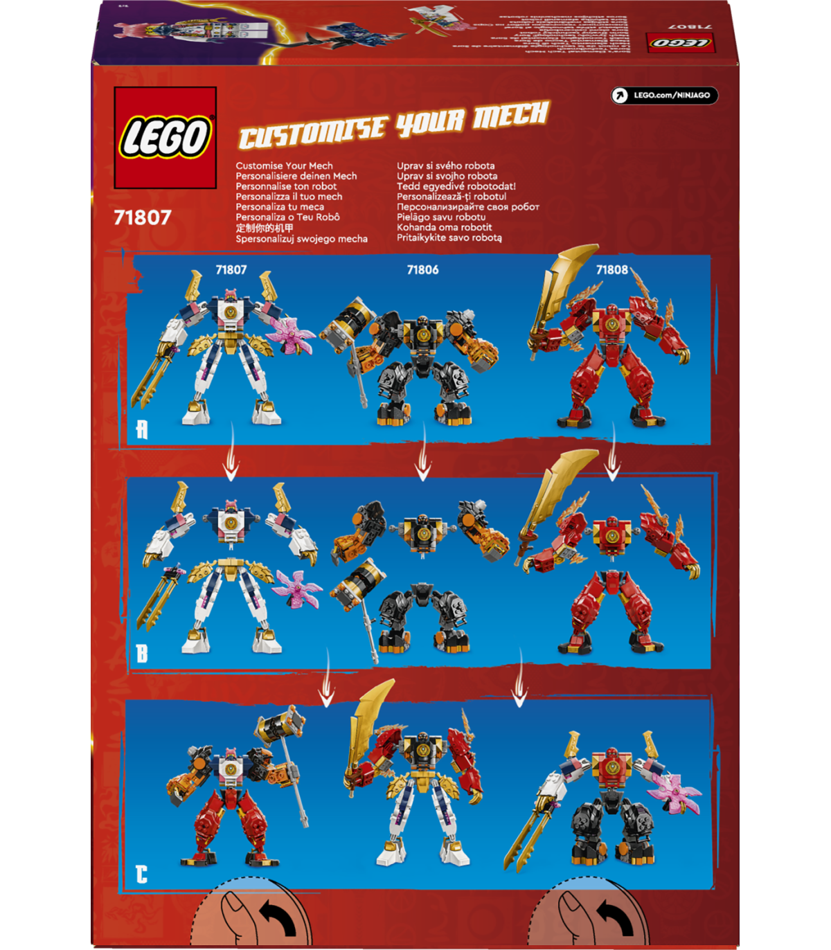 • Rohkem kohandatavaid roboteid – lapsed saavad vahetada ja kombineerida Sora roboti osi Cole'i maa elemendi roboti (71806) ja Kai tule elemendi robotiga (71808), mida müüakse eraldi