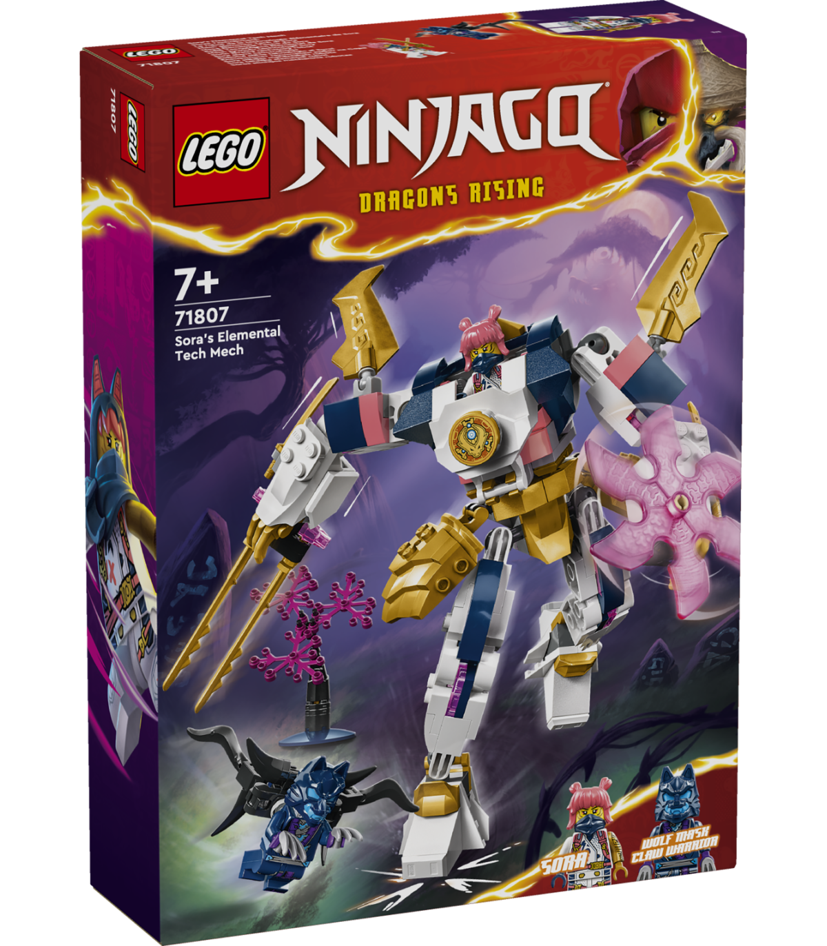 • 2 NINJAGO® minifiguuri – komplektis on Sora koos kahe katana mõõga tarvikuga ja Hundimaskis sõdalane, et lapsed saaksid taasesitada telesarja „NINJAGO Dragons Rising“ 2. hooaja lahinguid