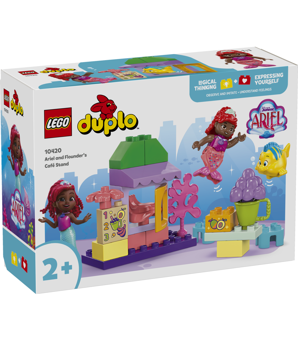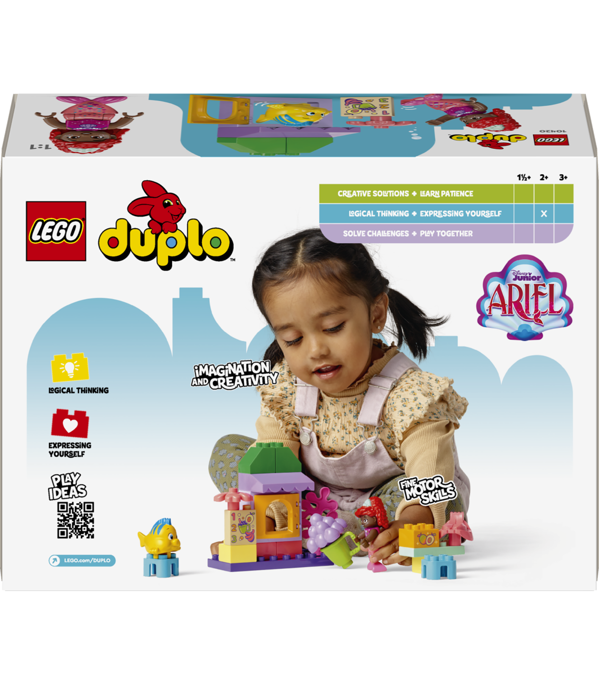 • Kaks tuttavat tegelaskuju – see rollimängu ehitusmänguasi eelkooliealistele lastele sisaldab kahte LEGO® DUPLO® figuuri: Ariel ja Flounder Disney Juniori telesarjast Ariel