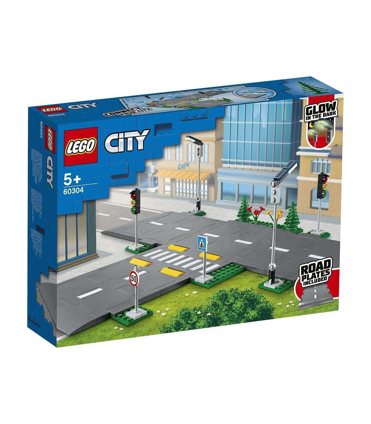 See LEGO® City teeplaatide (60304) ehituskomplekt annab laste loovmängule veidi elutruudust, lisades pimedas helendava mängu-tänavavalgustuse, valgusfoorid, liiklusmärgid, sõidurajamärgid, künnised, ülekäiguraja, puud ja roheala. Lapsed saavad teeplaate omal äranägemisel paigutada, ehitada nende ümber linna ja ühendada teised LEGO teeplaatide ehituskomplektid, et loodud linna suurendada!