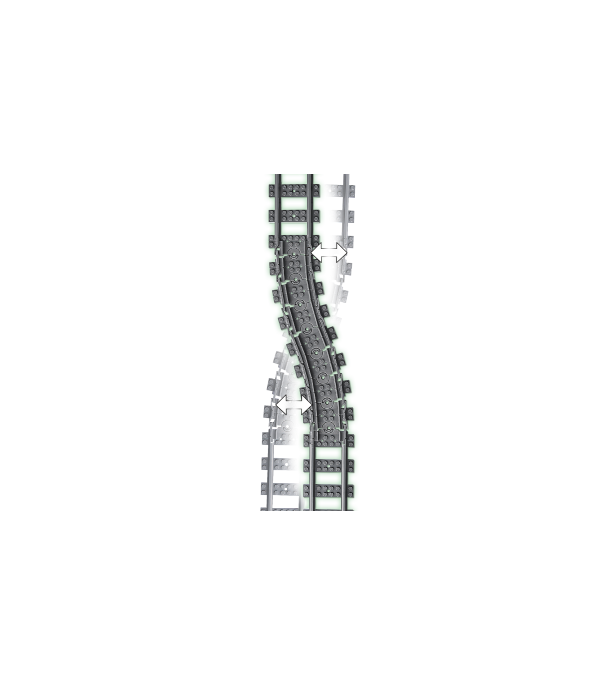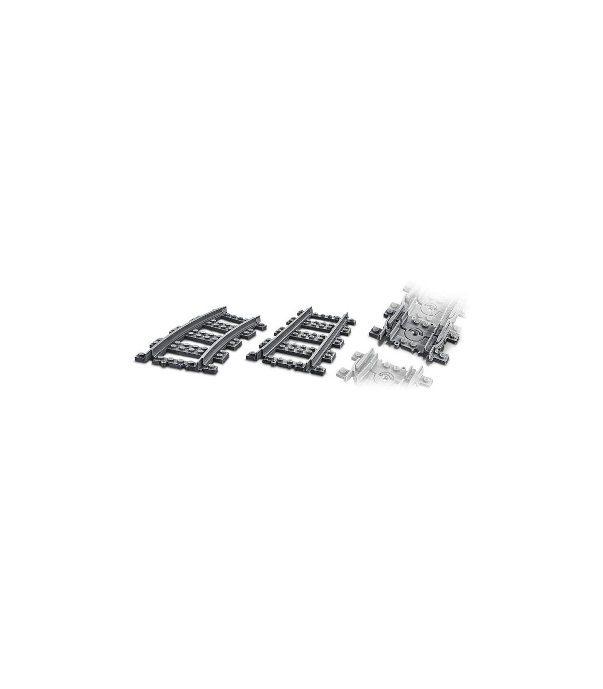 Komplekti kuulub 8 sirget, 4 kaardus ja 8 kohandatavat raudteeosa ja see on suurepärane täiendus LEGO City rongikomplektidele.