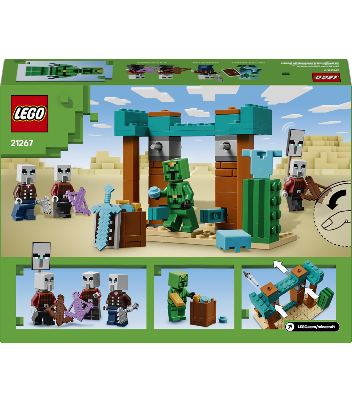 • LEGO® Minecrafti® kõrbemärul – Illageride kõrbepatrull on põnev laste mänguasi, mis äratab 7-aastaste ja vanemate poiste ja tüdrukute seas populaarse videomängu ellu