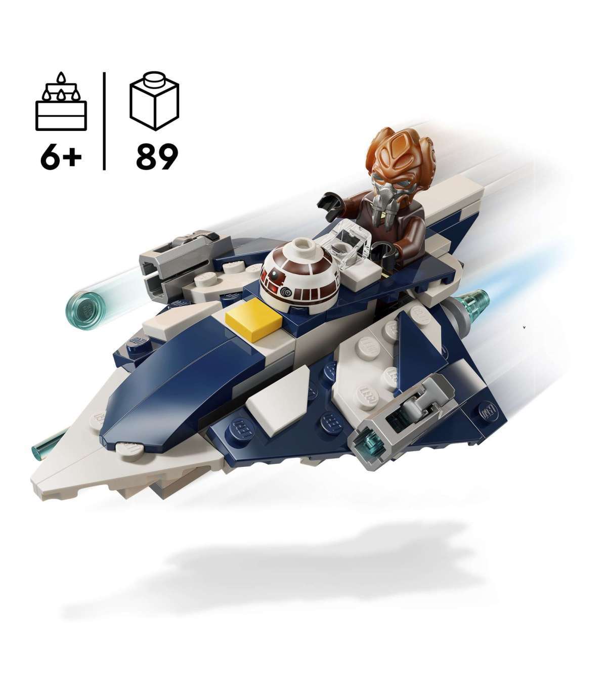 • Tundide kaupa mängu – komplekti kuulub ka R7-D4 pea, mis kinnitub kokpiti ette kere külge, nii et usaldusväärne Star Wars™ droid saab Plo Kooniga tema missioonidel kaasas käia