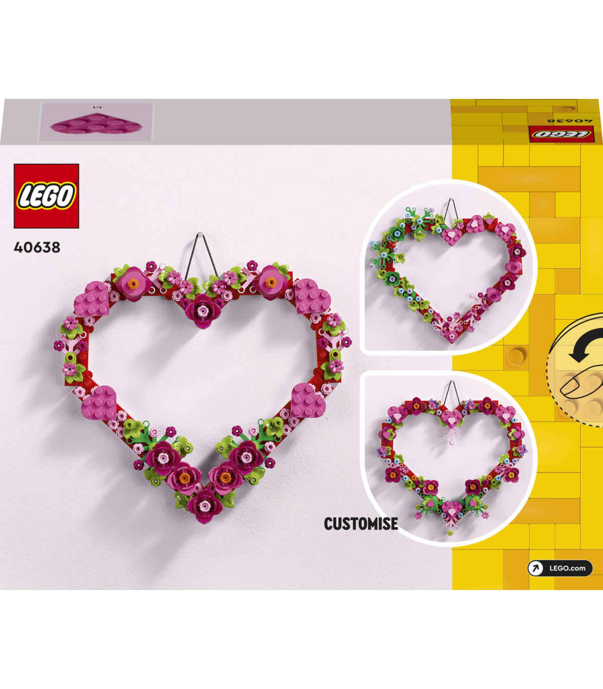 • Armastuse tähistamine – vanemad lapsed, kellel on kirg tähendusrikka sisekujunduse vastu, saavad ehitada LEGO® südamekujulise ornamendi (40638), mida saab riputada aknale, seinale, uksele või kinkida kellelegi, kellest nad hoolivad
