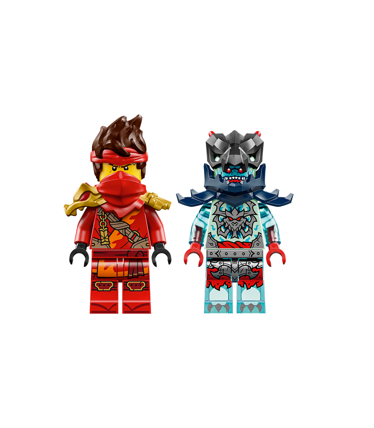 • 2 NINJAGO® minifiguuri – rollimängukomplektiga on kaasas ninjasõdalane Kai ja kurikuulus tontlik draakonisõdalane, kes sõidavad mootorrattamänguasjadega