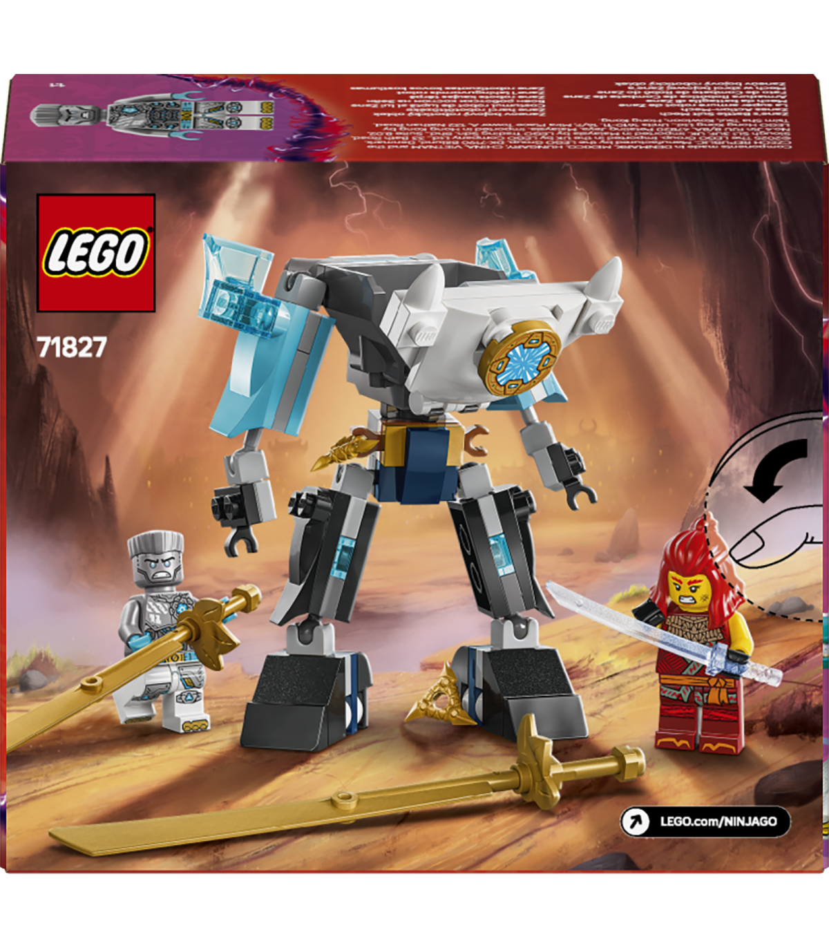 • Muudetava asendiga robotmänguasi – Zane’i lahinguvormis robotil on muudetava asendiga jalad ja käed, ülakeha, mis pöörab 360 kraadi, avatav rind minifiguuri paigutamiseks ja 2 suurt mõõgatarvikut
