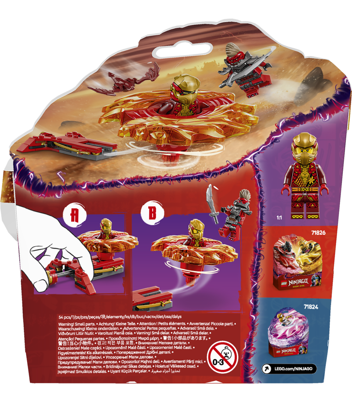 • 2 NINJAGO® minifiguuri – selle lastele mõeldud ehituskomplektiga on kaasas Kai, kes sõidab Spinjitzu spinneri sees, kurikuulus draakoniskaut ja väike draakonimudel