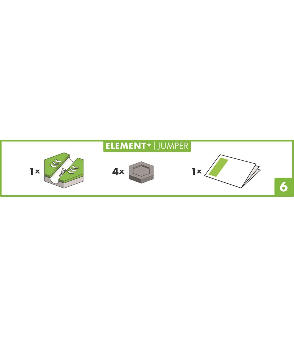 Komplektis on: üks trampliin, neli klotsi ja juhend