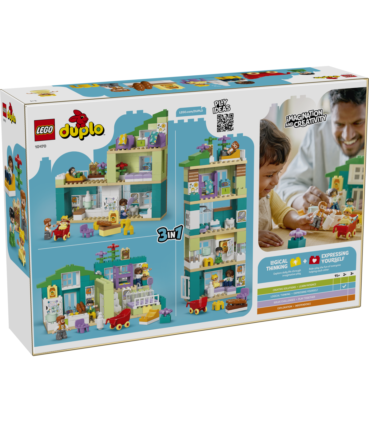 Kolm ehitusvõimalust – Väikelapsed avastavad selle kolm ühes nukumaja ehituskomplekti ehitamisel ja ümberehitamisel oma loovust, kui panevad kokku kolm moodsat kodu, kus on kaks magamistuba, vannituba ja köök