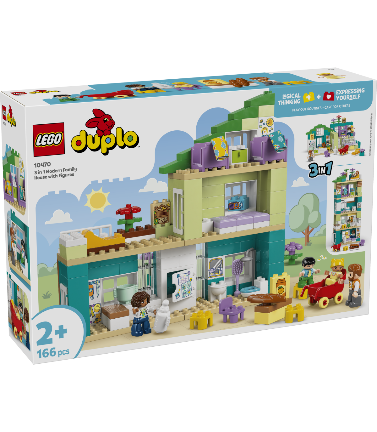 Nukumaja – Detailne kolm ühes moodne peremaja figuuridega (10470) võimaldab väikelastel mängida rutiine ja nautida pereliikmeid matkides sotsiaalseid ja emotsionaalseid õppetegevusi