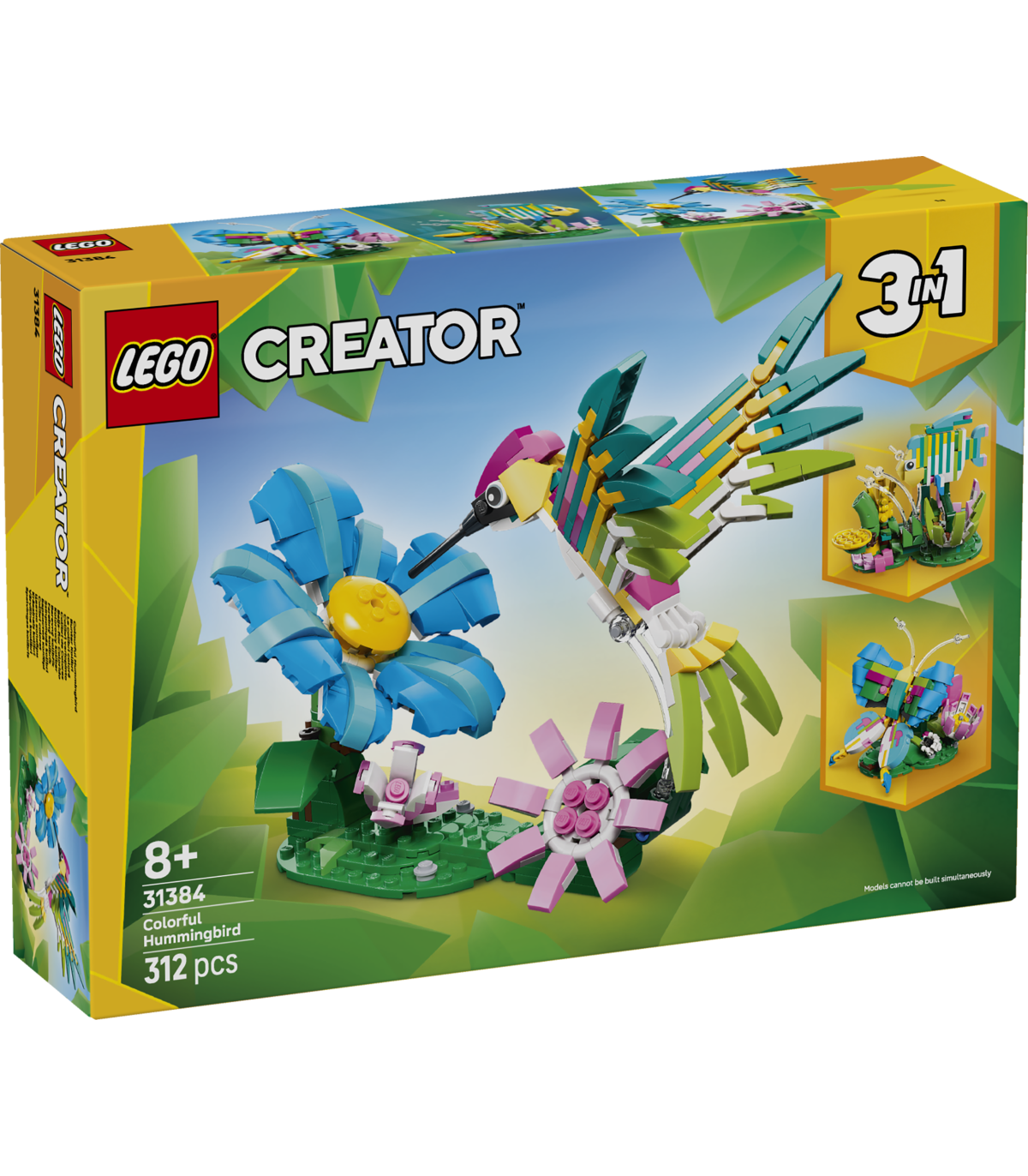 Kolm-ühes looduskaunistus – LEGO® Creator kolm ühes Metsloomad: Värvilise koolibri (31384) ehitusmänguasi võimaldab poistel, tüdrukutel ja lastel vanuses 8+ ehitada ja ümber ehitada 3 loomafiguuri alustel samade klotsidega