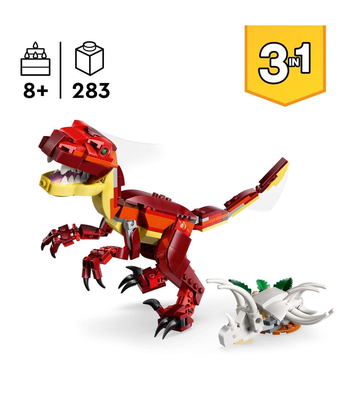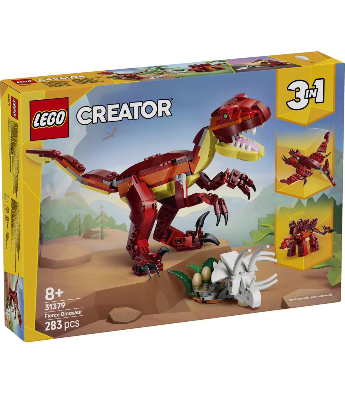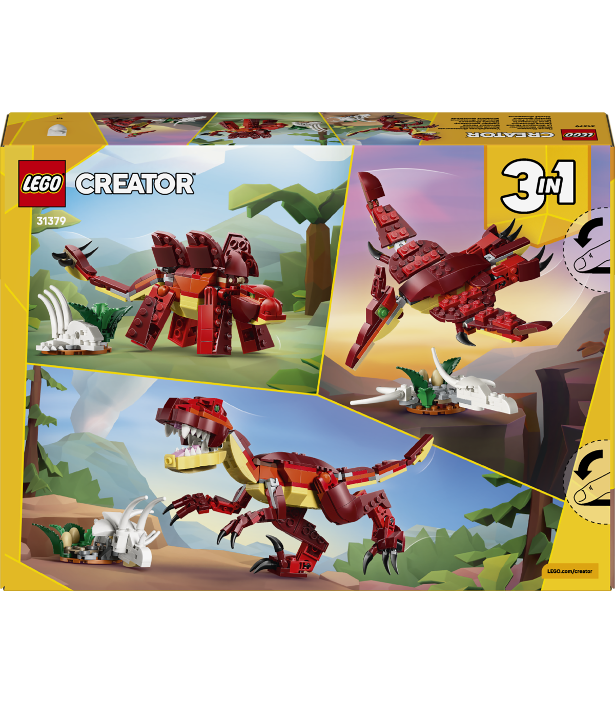 Kolm ühes dinosaurusemänguasi – LEGO® Creator kolm ühes raevuka dinosauruse (31379) ehituskomplekt võimaldab 8-aastastel ja vanematel poistel, tüdrukutel ja lastel samade klotsidega ehitamise ja ümberehitamise käigus loov olla