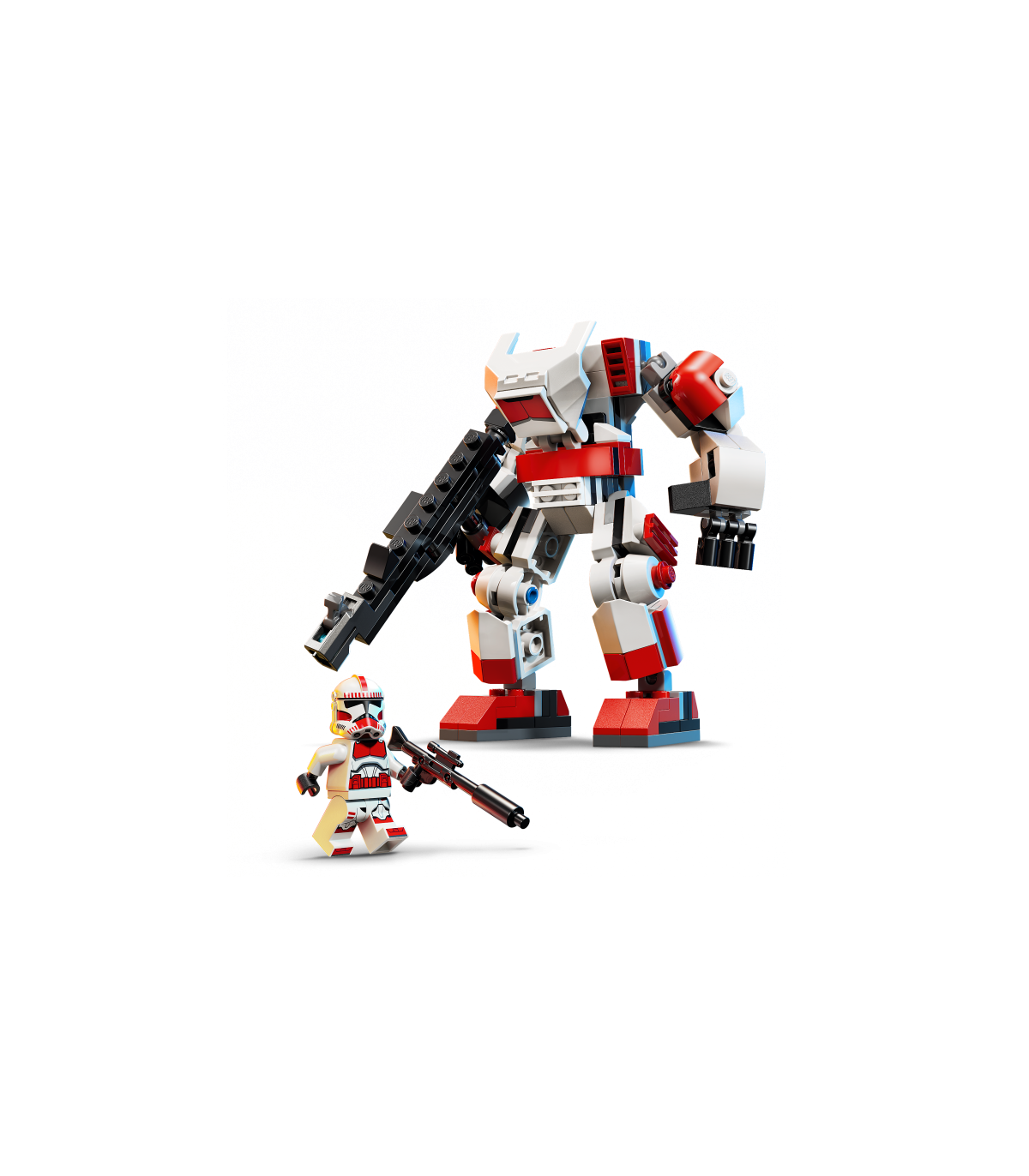 LEGO® STAR WARS™ MINIFIGUUR – Aseta Clone Shock Trooperi LEGO minifiguur soomustatud roboti kokpitti ja kinnita selle kahuripüss roboti taha