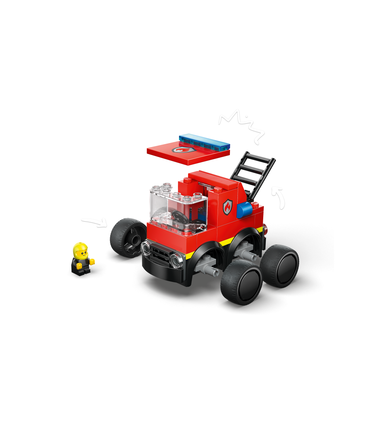 LIHTSALT KOKKUPANDAV MÄNGUASI – See miniehituskomplekt sisaldab kõike, mida noored ehitajad vajavad, et luua omaenda tuletõrjeauto ja LEGO® City Sõidukite noore tuletõrjuja minifiguur