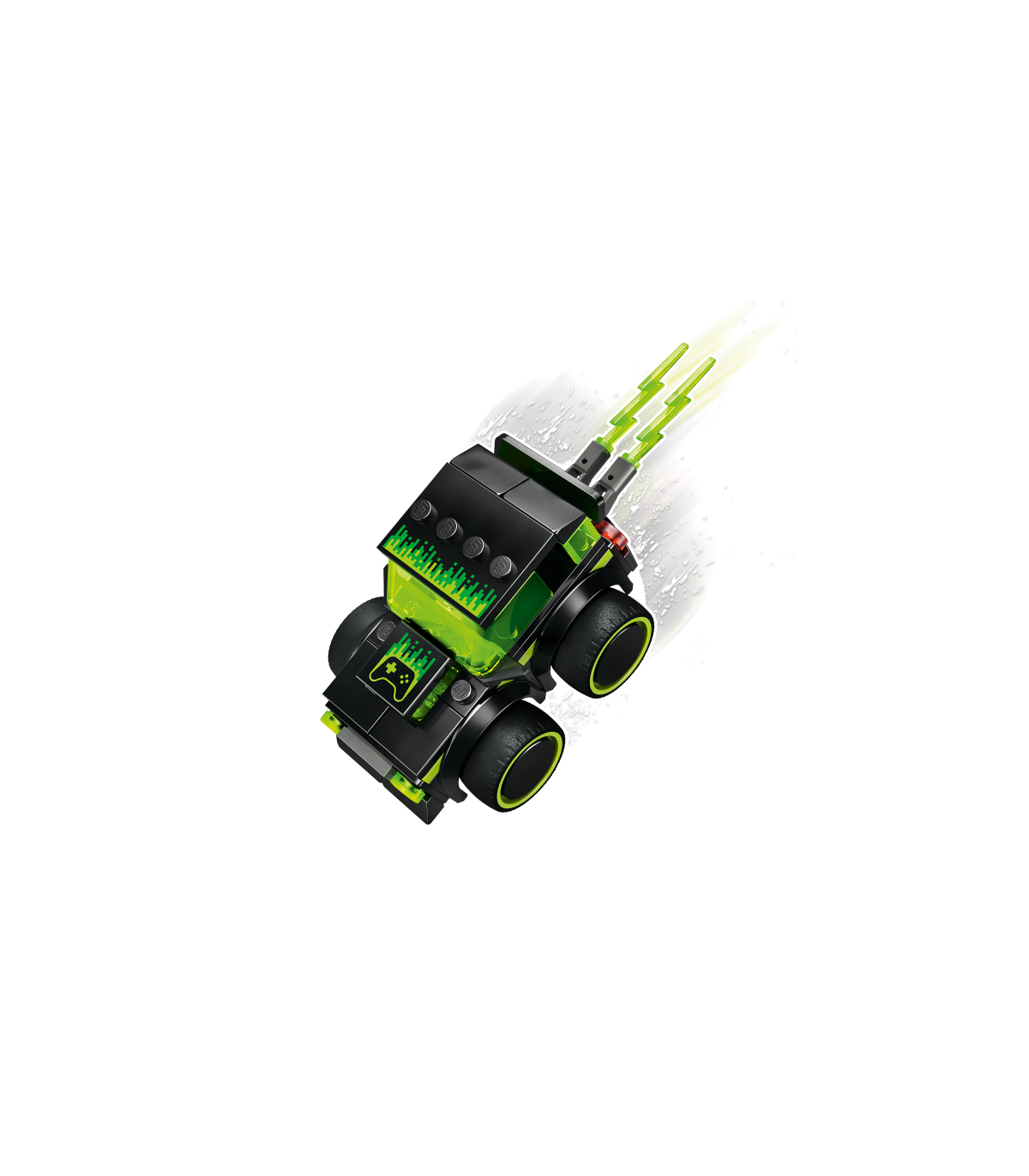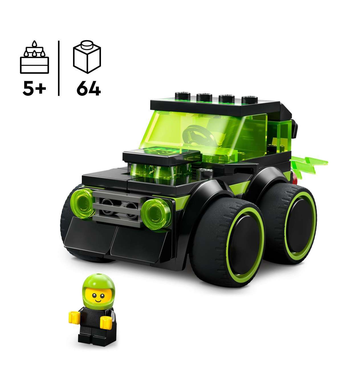 LOOVAKS MÄNGIMISEKS MÕELDUD MINIAUTO – Ikooniline neoonmustriga mänguauto, millel on ülisuured kummirattad, juhikabiin ja leegitsev väljalasketoru, mis soodustab loovat ja praktilist mängimist