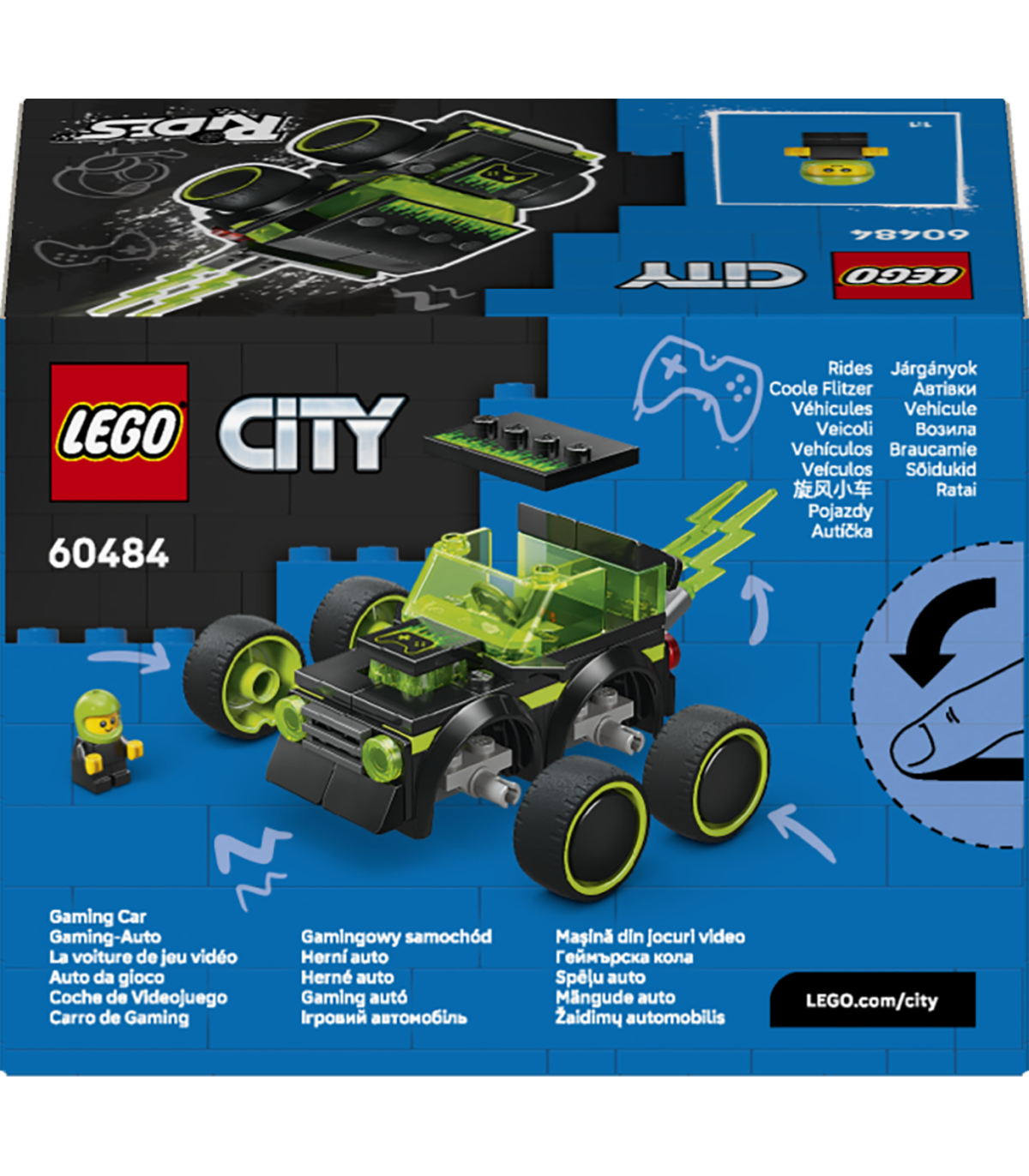 MÄNGUAUTO 5+AASTASTELE – Ärata laste kujutlusvõime selle LEGO® City Sõidukite mängude võidusõiduauto (60484) mudeliehituskomplektiga, mis on mõeldud lastele, kes armastavad lahedaid sõidukeid ja kiiretempolisi videomänge