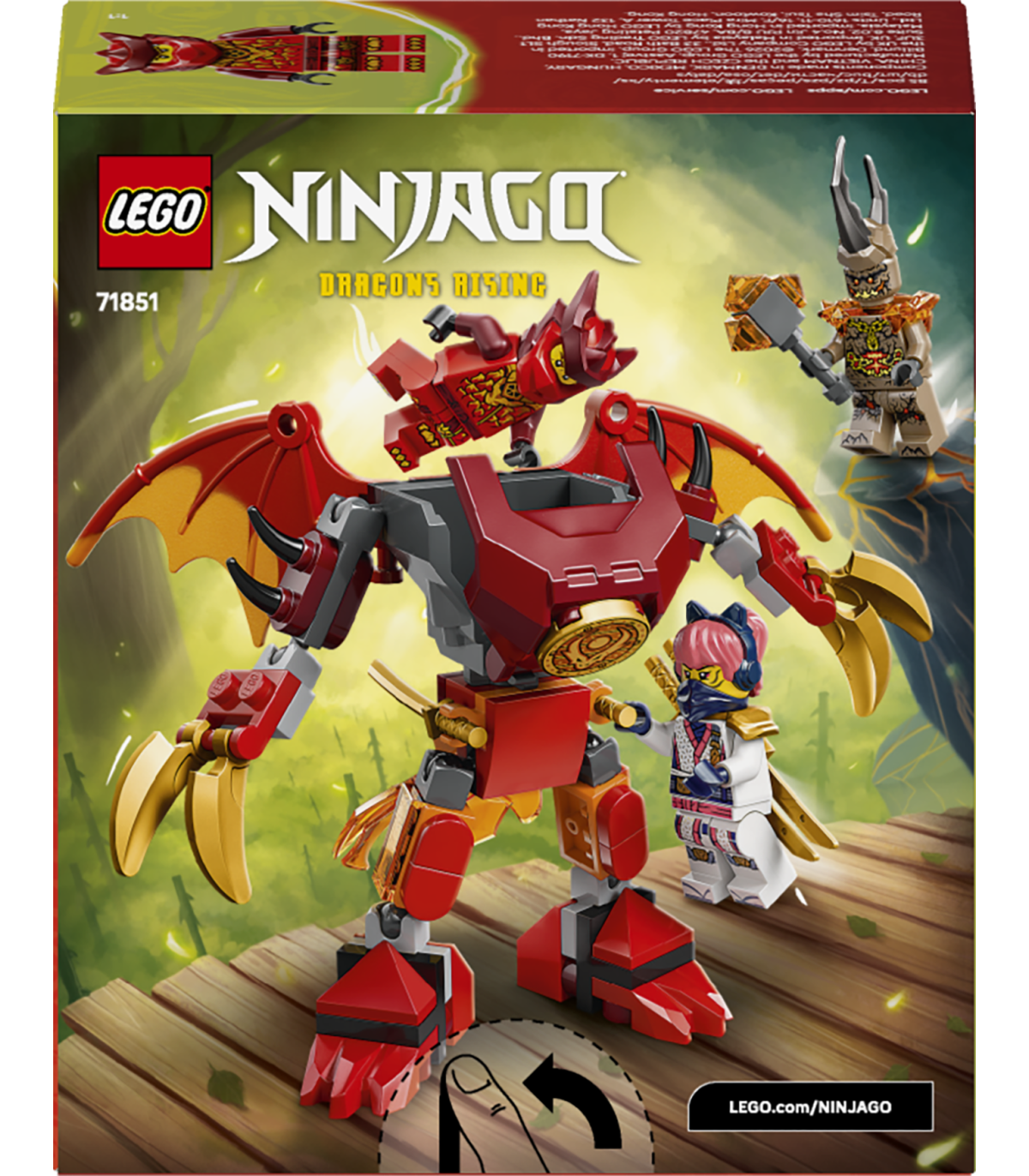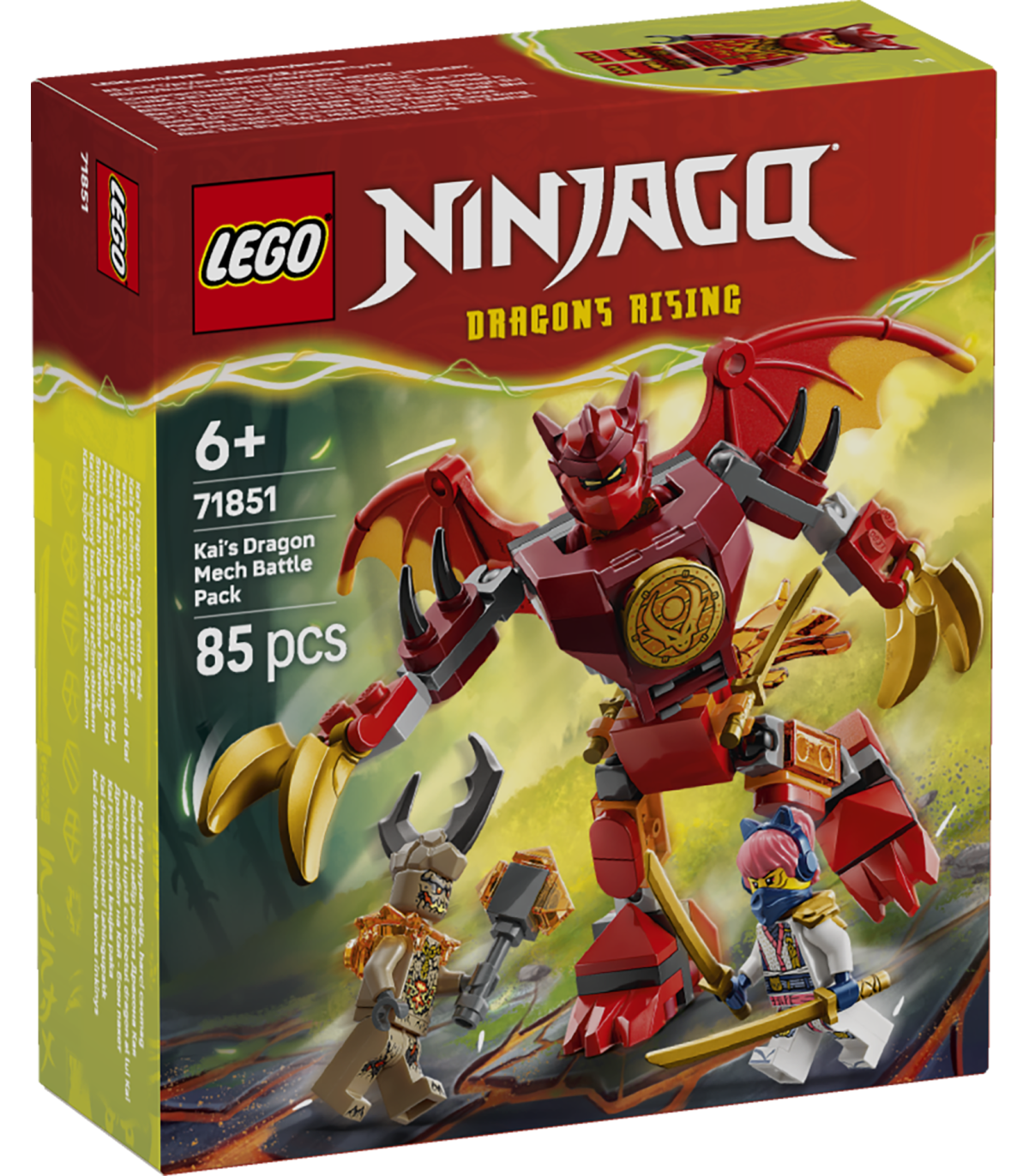 Robot lastele – Kai draakoniroboti lahingupakk (71851) võimaldab alates 6-aastastel poistel ja tüdrukutel etendada rollimänge telesarja NINJAGO® Dragons Rising 4. hooajast