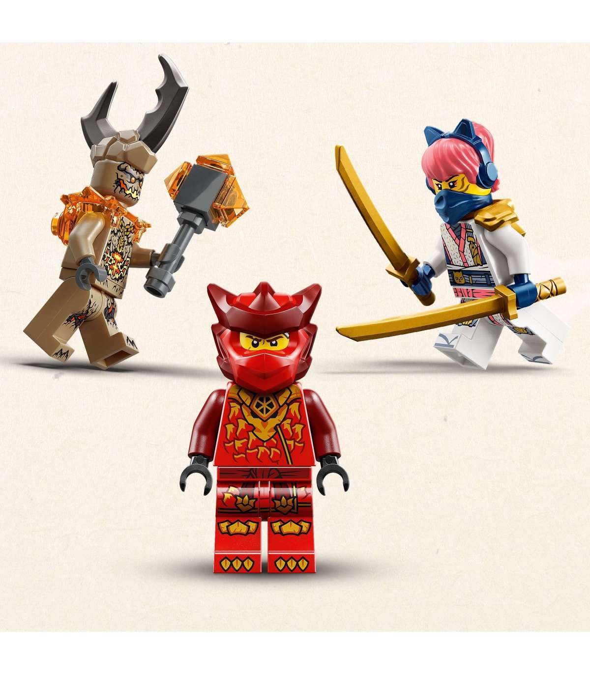 Kolm NINJAGO® minifiguuri – Selle ninjamänguasjaga on kaasas Kai, Sora ja kurikuulus Maakoletis, et fännid saaksid mängida põnevaid hea ja kurja lahinguid