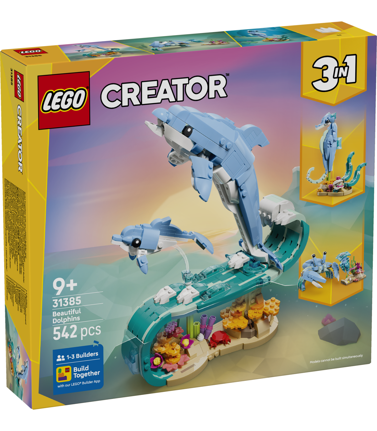 Lõputud mänguvõimalused – Lapsed saavad nautida vahvaid lugusid kolme kauni loomamänguasjaga (mudeleid ei saa korraga koos ehitada): kaks delfiinimänguasja, mis sõidavad laineharjal, merihobumudeli või krabimänguasja