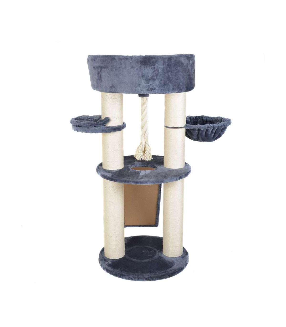 Kassi kraapimispuu ja puhkekoht PROMINENT PERSIAN S (tumehall). Valmistatud plüüsist ja naturaalsest sisalist. Mõõdud 60 x 60 x 141 cm.. Plüüs 400 g/m2. Kraapimispostide nöör valmistatud sisalist pakusega 4 mm. Kraapimisposti läbimõõt 145 mm.