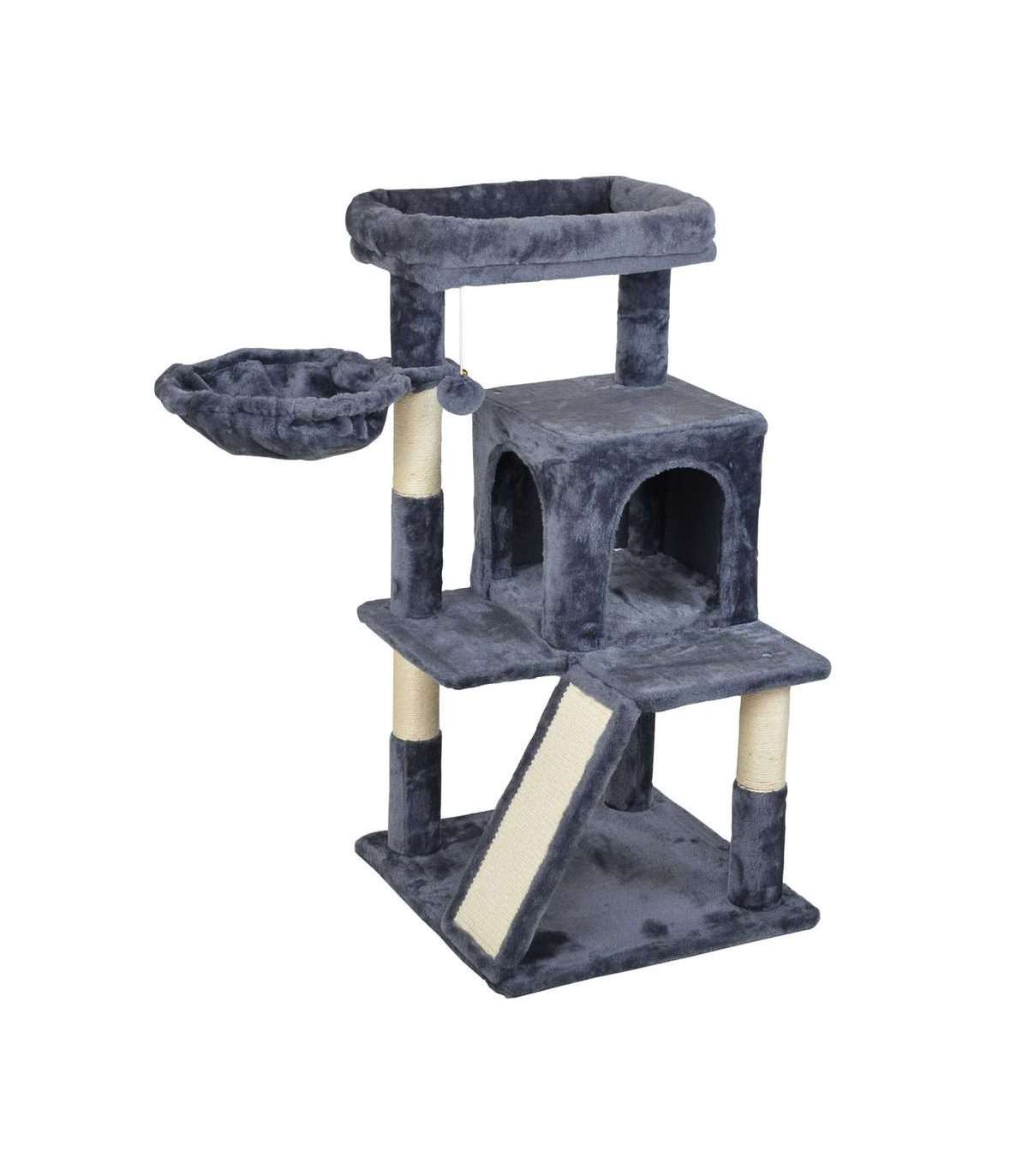 Kassi kraapimispuu ja puhkekoht PROMINENT LUNA B (tumehall). Valmistatud plüüsist ja naturaalsest sisalist. Mõõdud 48 x 48 x 96 cm. Plüüs 400 g/m2. Kraapimispostide nöör valmistatud sisalist pakusega 4 mm. Kraapimisposti läbimõõt 70 mm.
