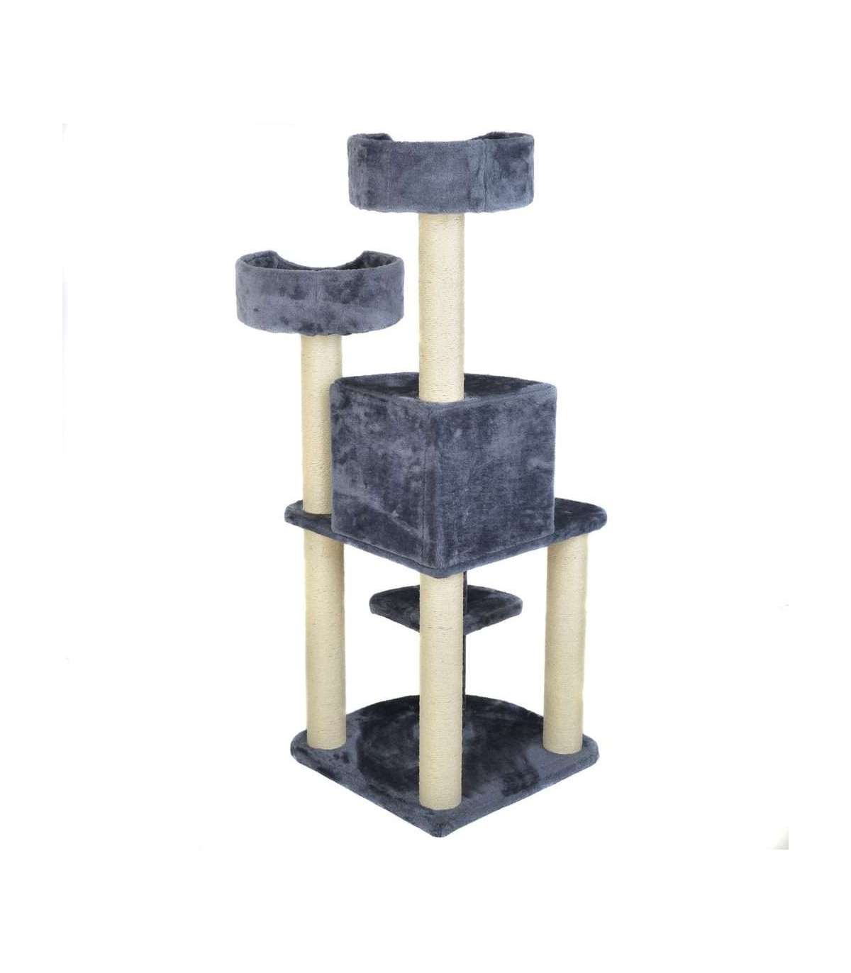 Kassi kraapimispuu ja puhkekoht PROMINENT NALA S (tumehall). Valmistatud plüüsist ja naturaalsest sisalist. Mõõdud 50 x 50 x 128 cm. Plüüs 400 g/m2. Kraapimispostide nöör valmistatud sisalist pakusega 4 mm. Kraapimisposti läbimõõt 85 mm.