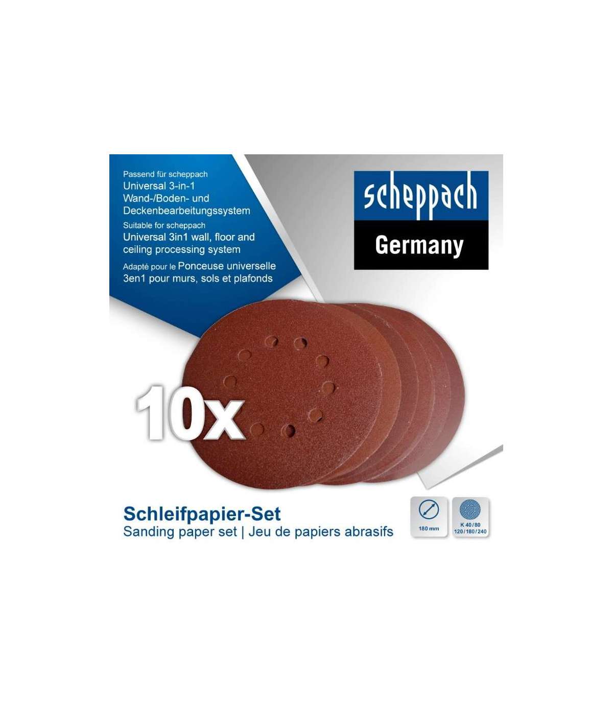 Velcrolihvketaste komplekt CGP1200 Ø180mm P40/80/120/180/240, Scheppach