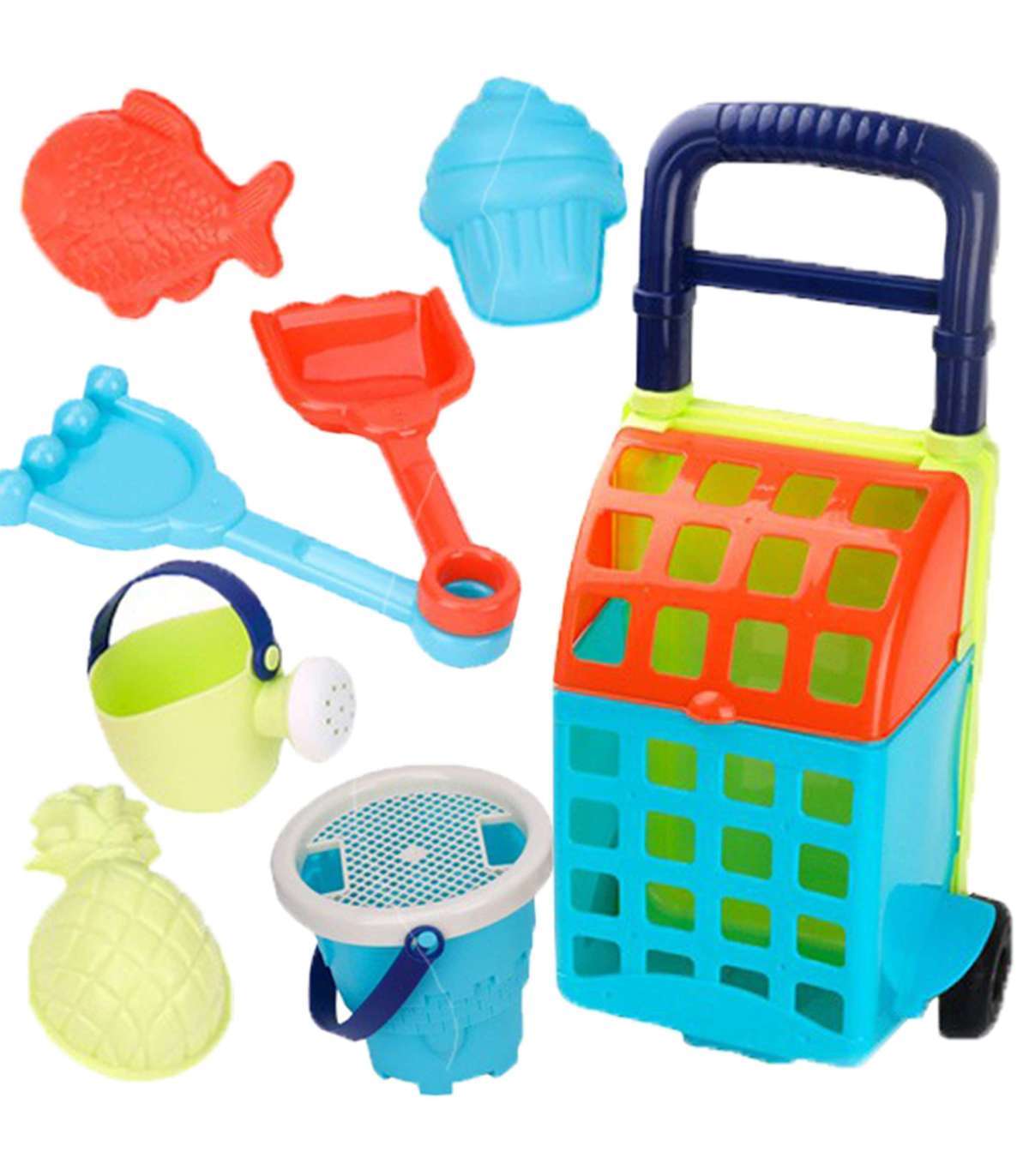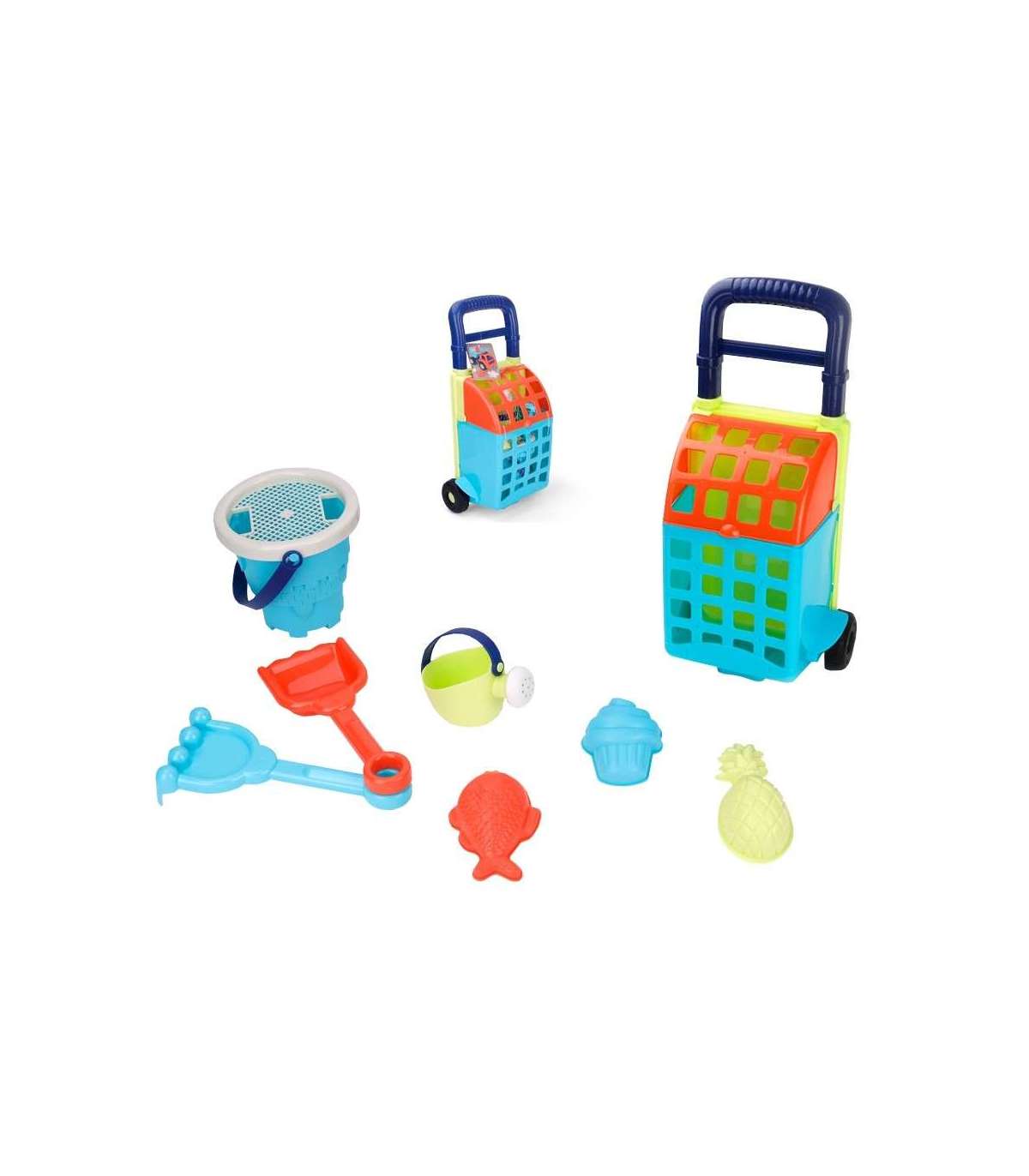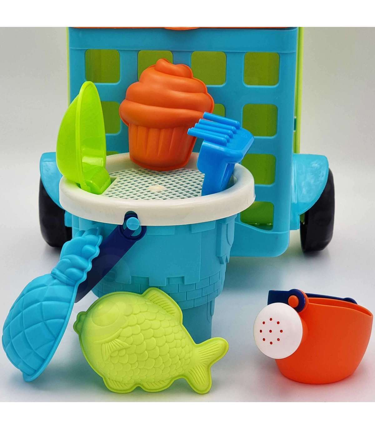 Liivakomplekt kärus kaubamärgilt WOOPIE on suurepärane lisa liivakasti või isegi aeda. Komplekt sisaldab 9 osa: käru, ämber, sõel, kastekann, 3 vormi, labidas, rehad. Komplektil on ilus neoonne disain. Ämbril ja kastekannul on mugav käepide kandmiseks. Garantii suurepärasele mängule liivakastis, rannas või isegi aias!